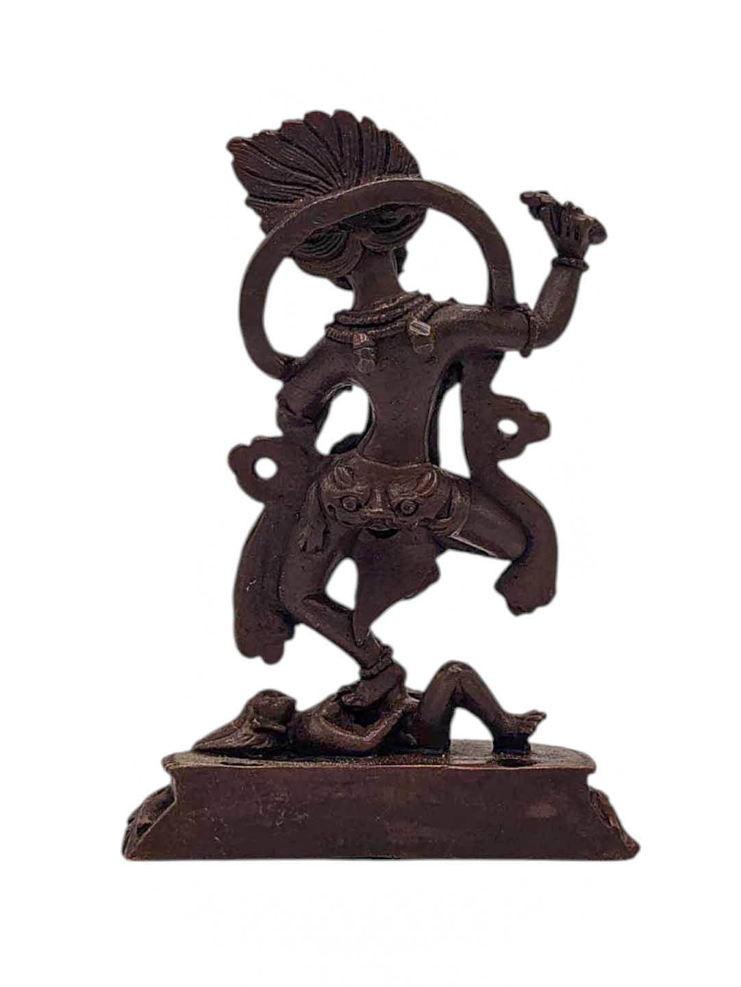 By imitating the natural aging process, the chocolate color antique patina lends an air of authenticity and vintage charm to the Simhamukha Yogini. This carefully crafted finish ensures that the patina remains intact for an extended period, offering longevity and resistance to wear. The result is a unique piece that captures the essence of a time-worn copper statue, evoking a sense of history and artistic heritage.