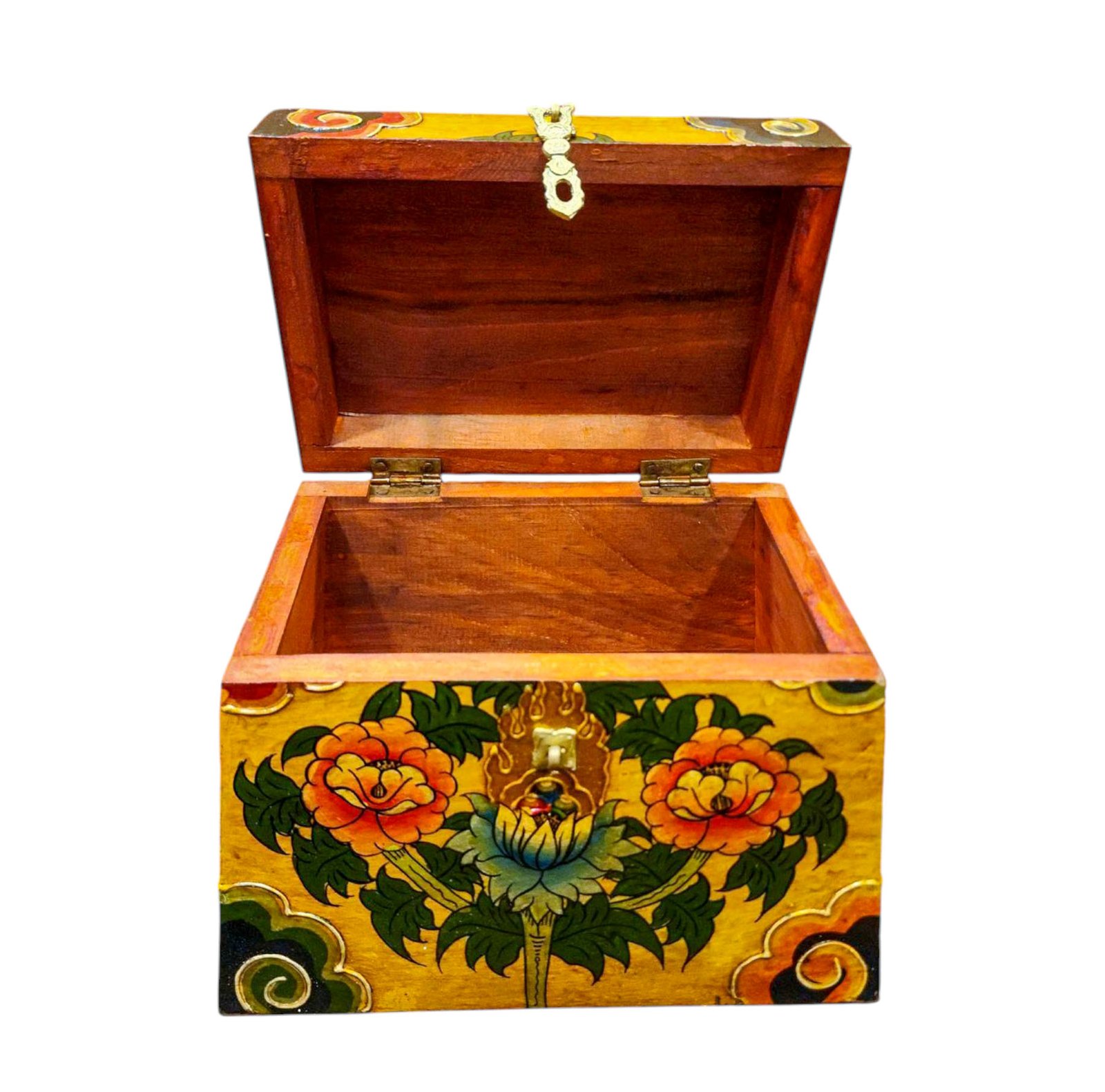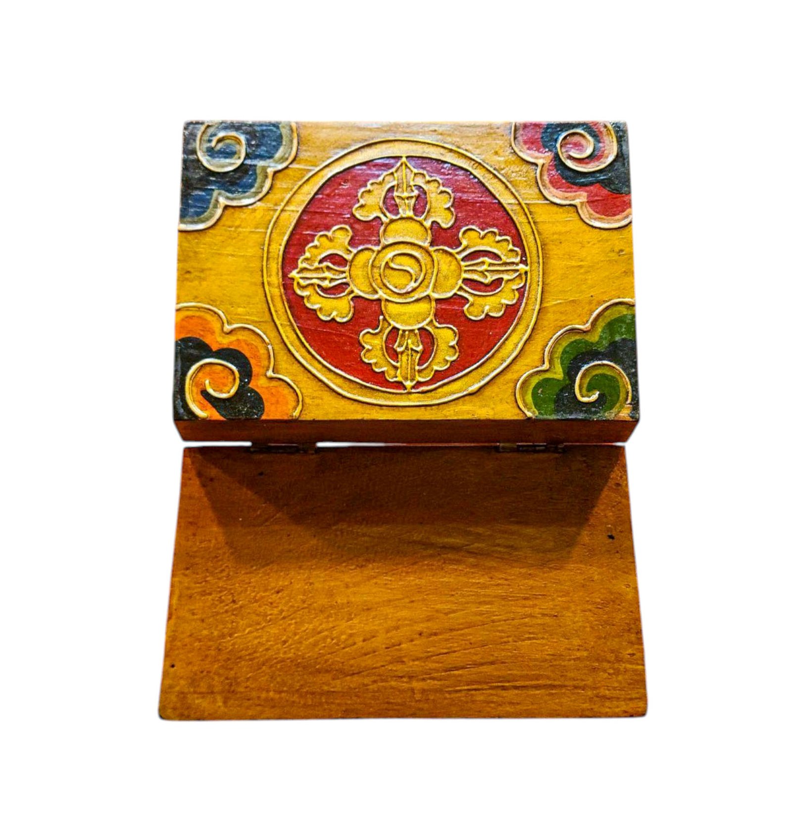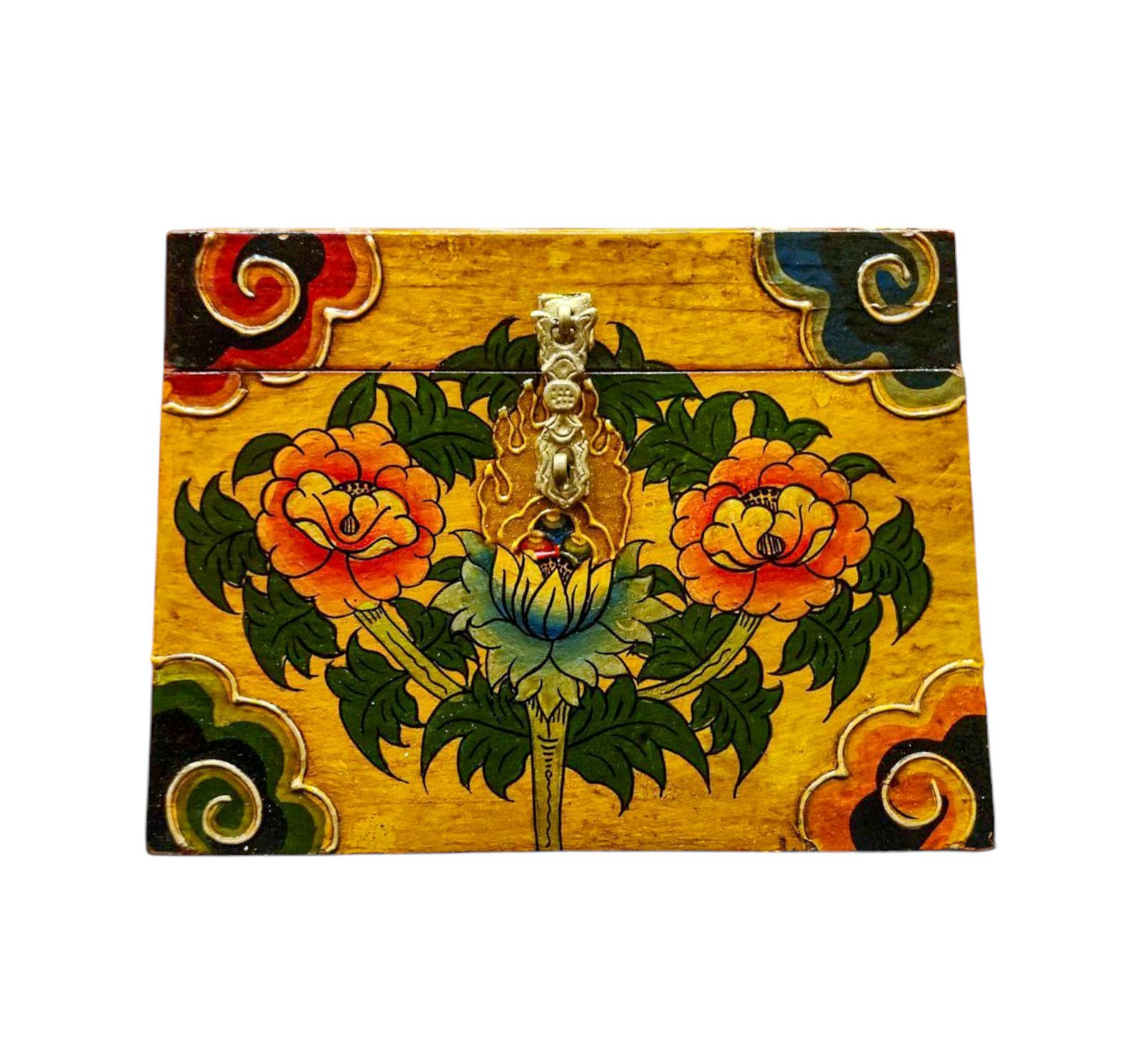 Buddhist Wooden Box with Lotus Design, Tibetan Style with Traditional Colors |