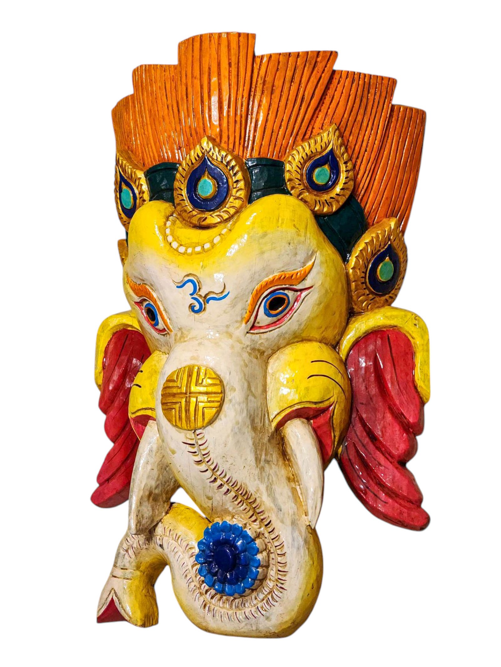 Ganesh, Handmade Wooden Mask, Wall Hanging, Thangka Color Finishing, Poplar Wood |
