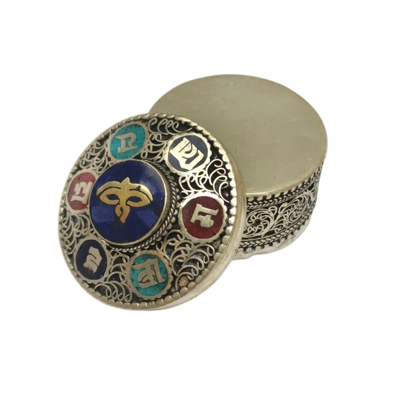In Tibetan culture, metal jewelry boxes are often used to store important religious artifacts such as prayer flags, thangkas (religious paintings), or Tibetan singing bowls. These boxes may be decorated with traditional Tibetan designs such as the eight auspicious symbols or the Tibetan knot.