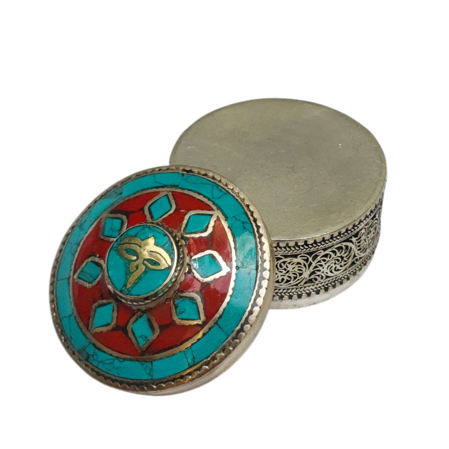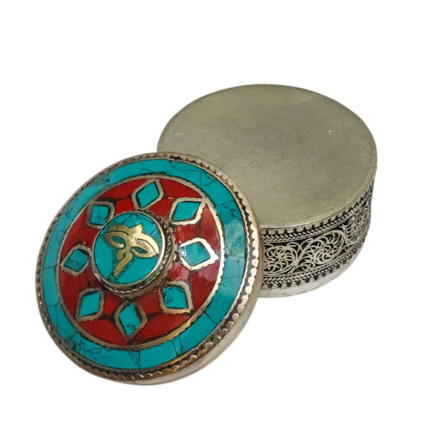 In Tibetan culture, metal jewelry boxes are often used to store important religious artifacts such as prayer flags, thangkas (religious paintings), or Tibetan singing bowls. These boxes may be decorated with traditional Tibetan designs such as the eight auspicious symbols or the Tibetan knot.