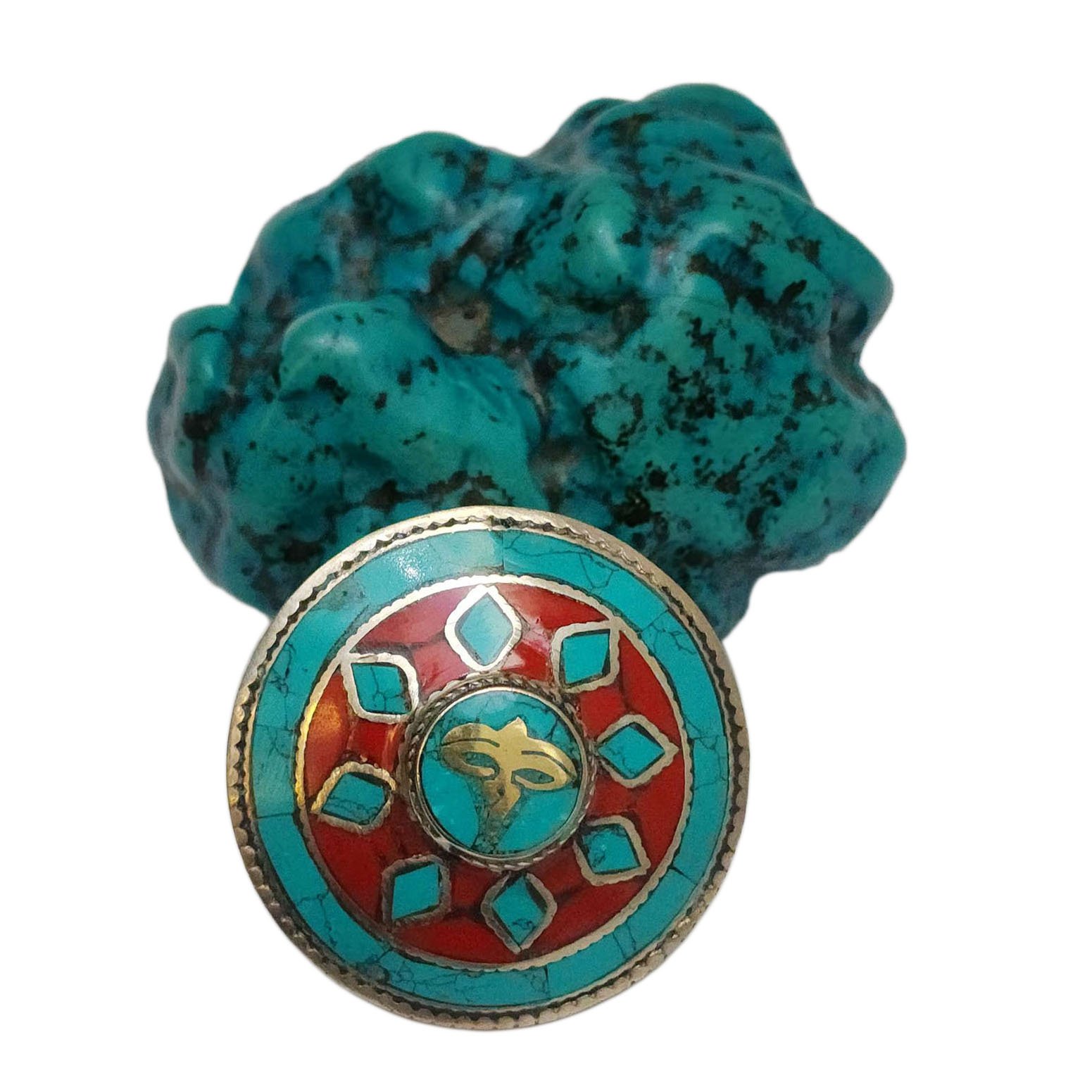 The Jewelery Box is adorned with an exquisite array of semi-precious stones, including turquoise, coral, and lapis lazuli. These stones are carefully selected and meticulously placed on the Jewelery Box's surface, adding a touch of opulence and enhancing its overall beauty. Each stone is thoughtfully positioned using a high-quality adhesive, ensuring secure and long-lasting attachment. The vibrant colors and unique patterns of the stones create a captivating contrast against the backdrop of the Jewelery Box, elevating its visual appeal and making it truly eye-catching. Read More