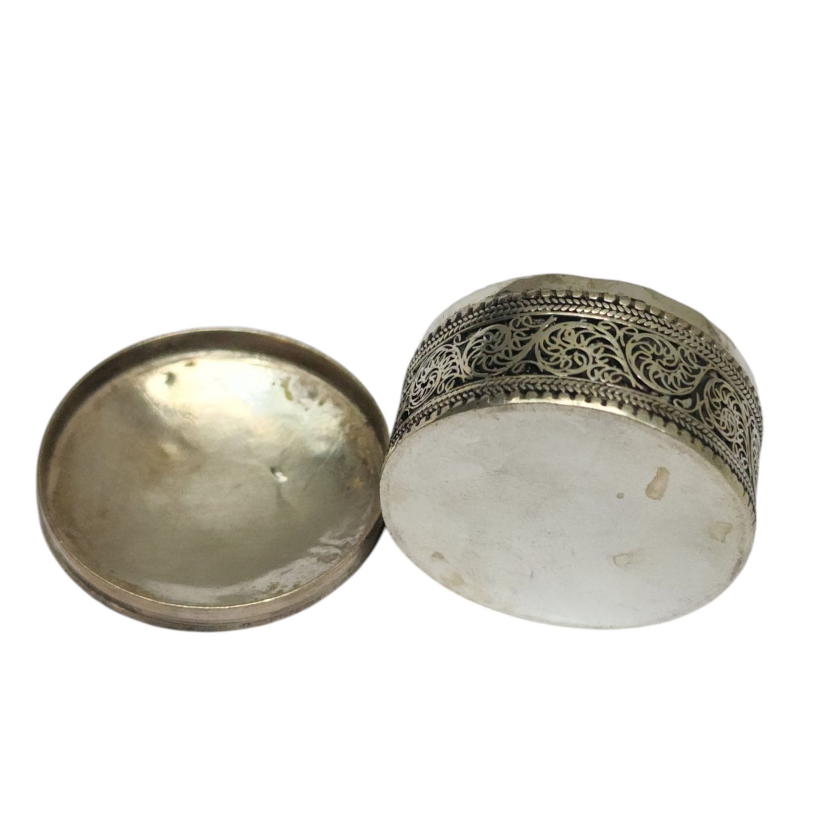 In Buddhist culture, metal jewelry boxes are often used to store sacred objects such as prayer beads, meditation cushions, or other items used in Buddhist practice. These boxes may be decorated with intricate designs that incorporate Buddhist symbols such as the dharma wheel, the vajra, or the Buddha's footprint.