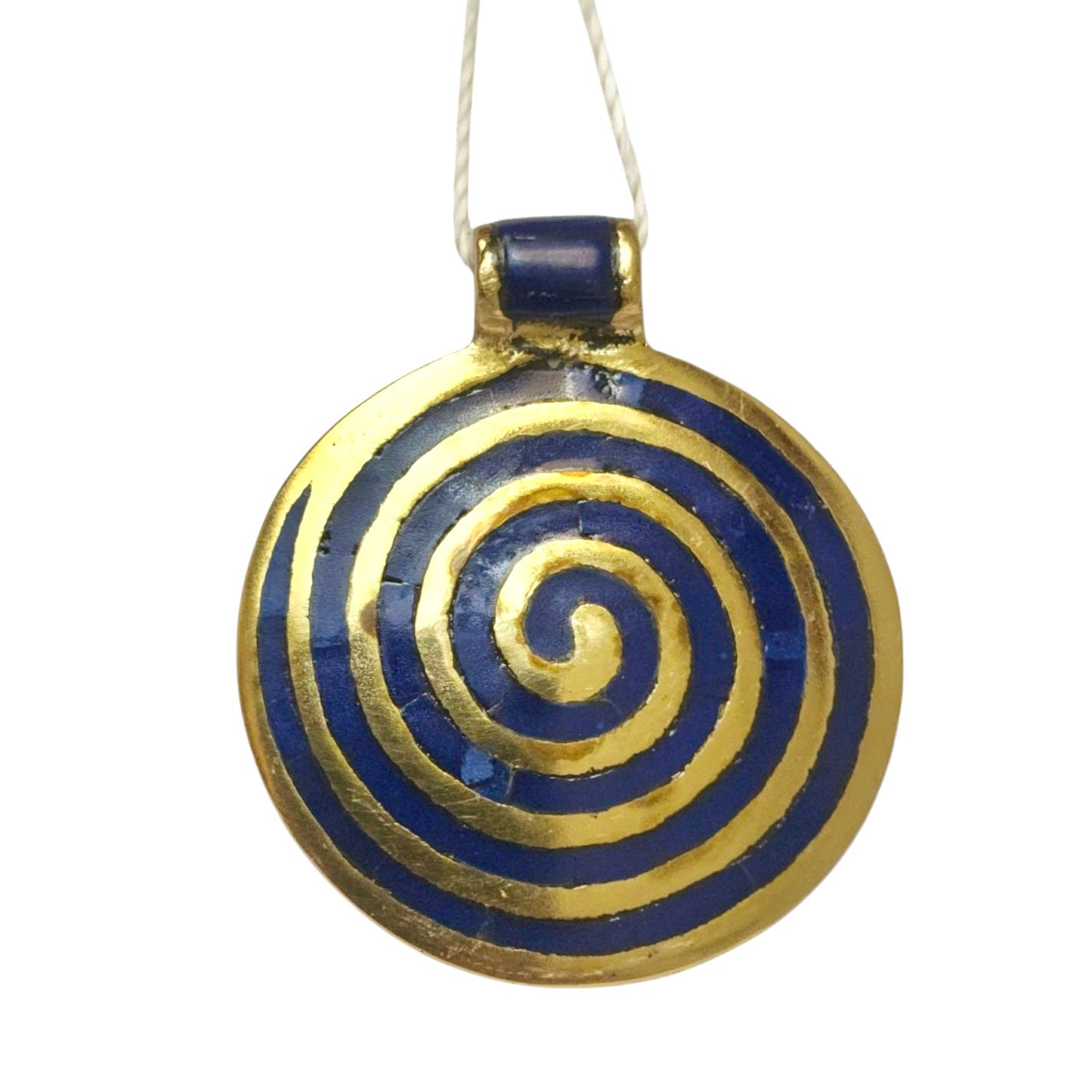 Metal Pendants with Spiral Design, Stone Setting, Lapis |