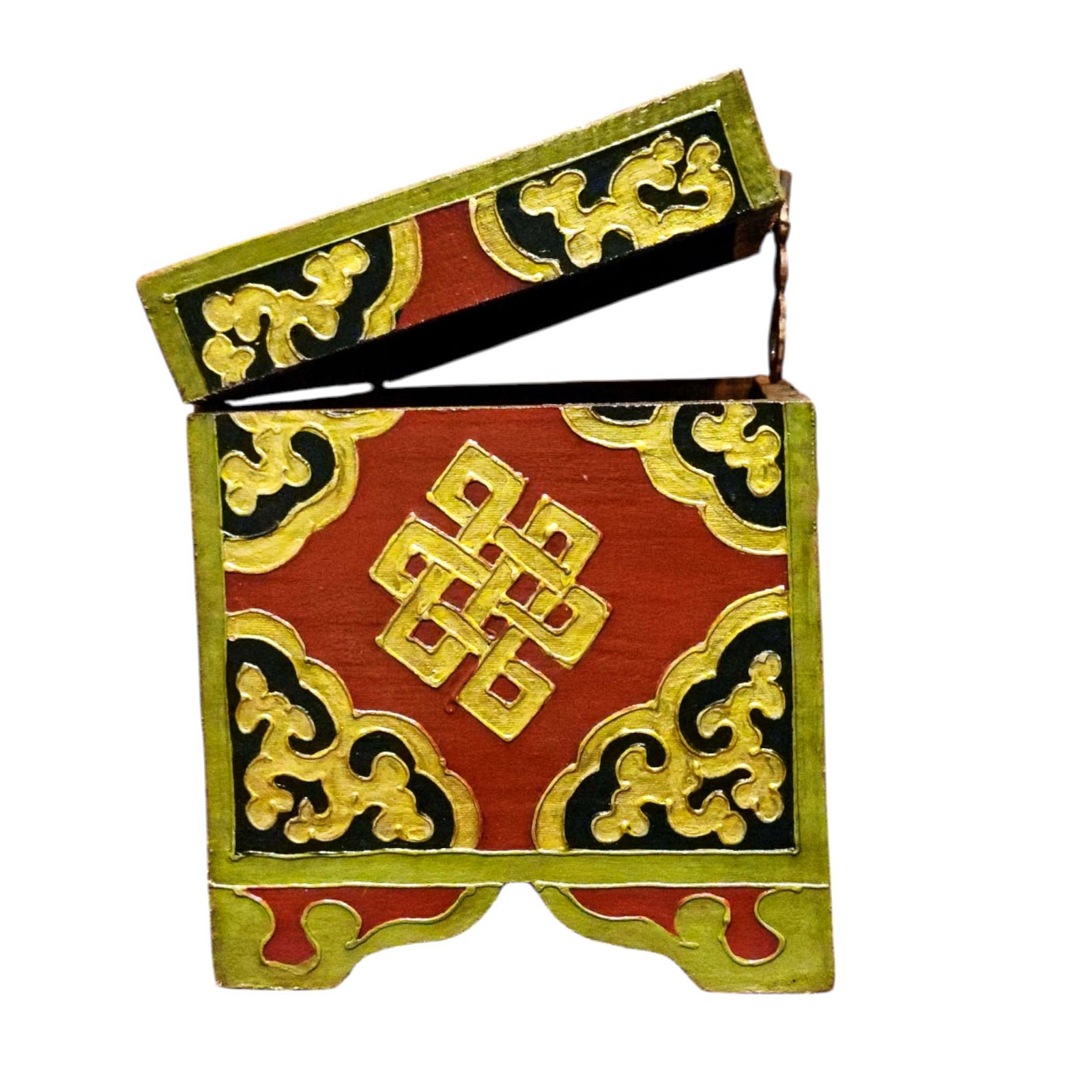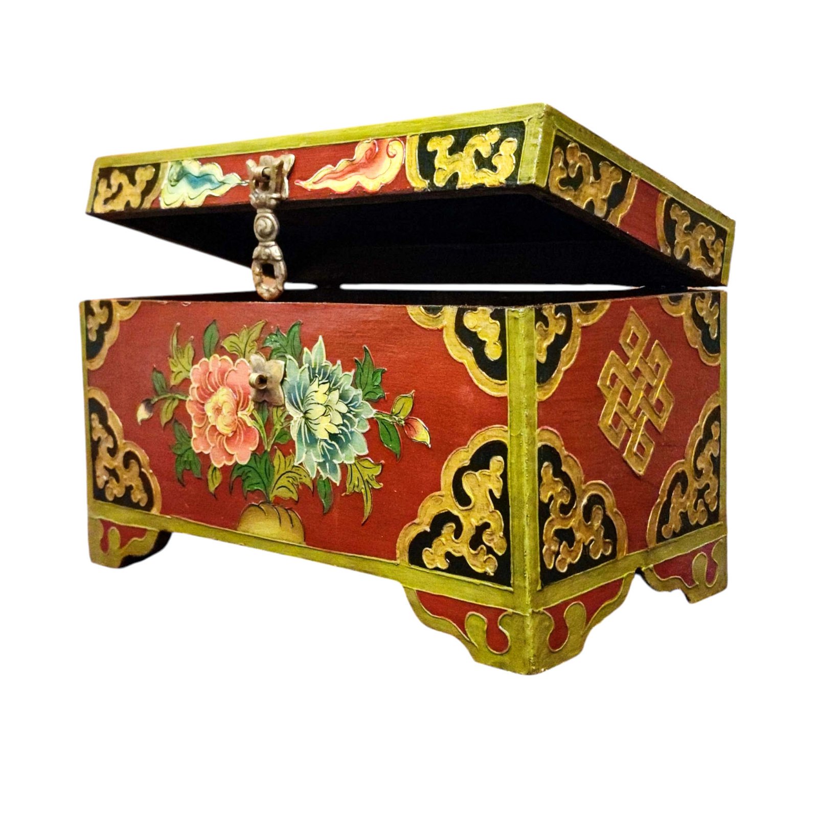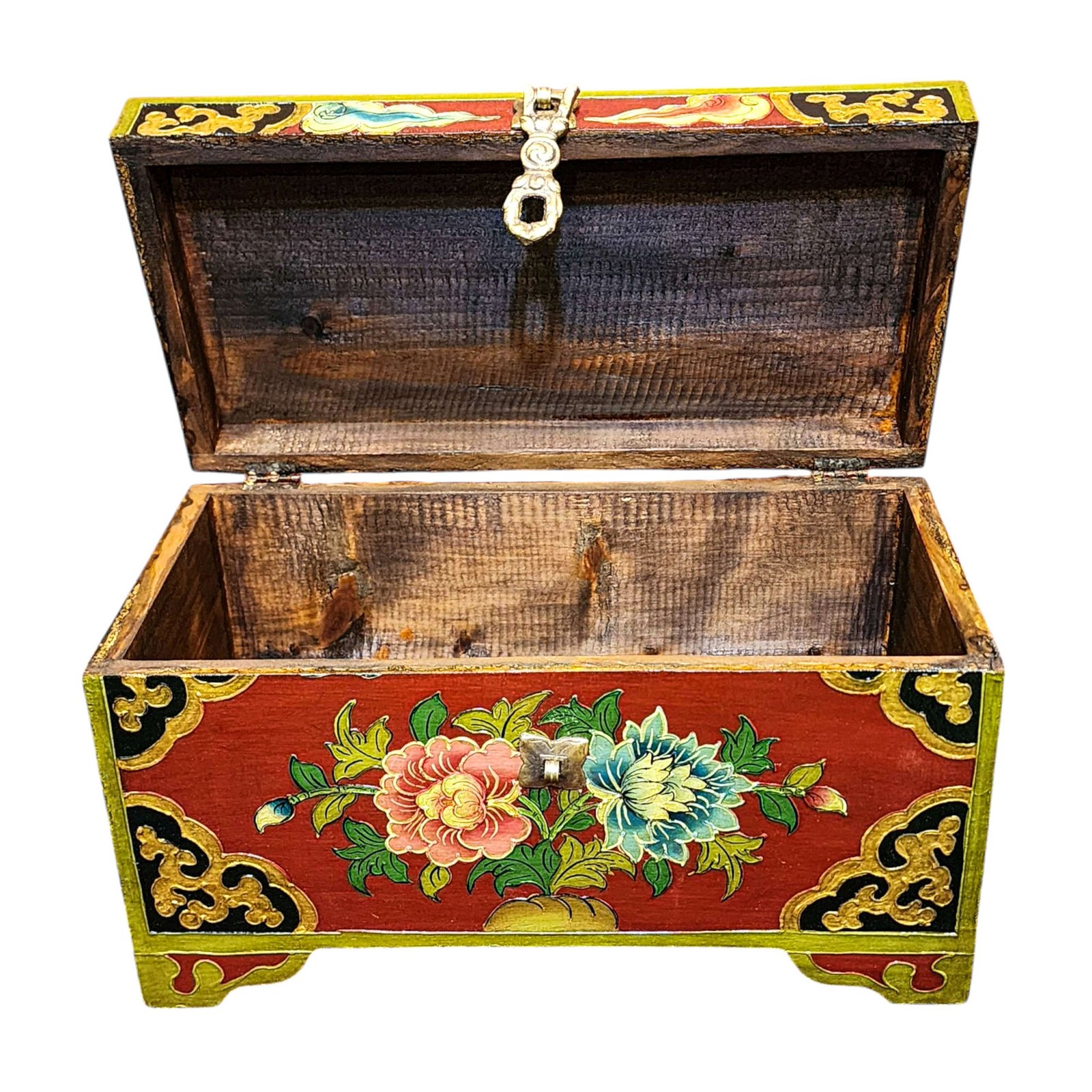 Buddhist Wooden Box with Lotus Design, Tibetan Style with Traditional Colors |