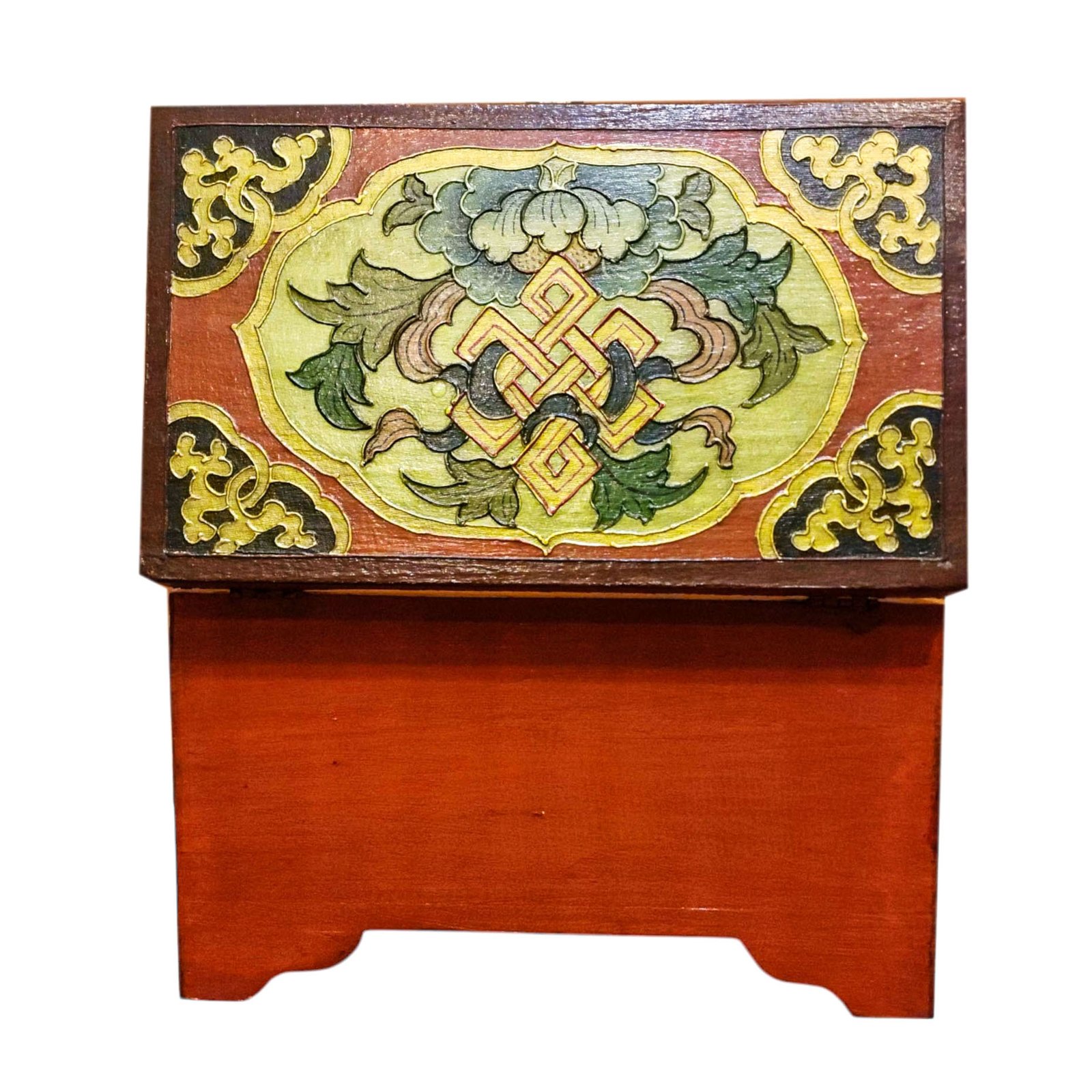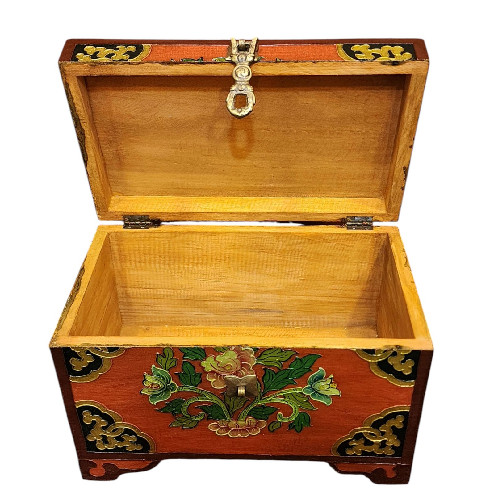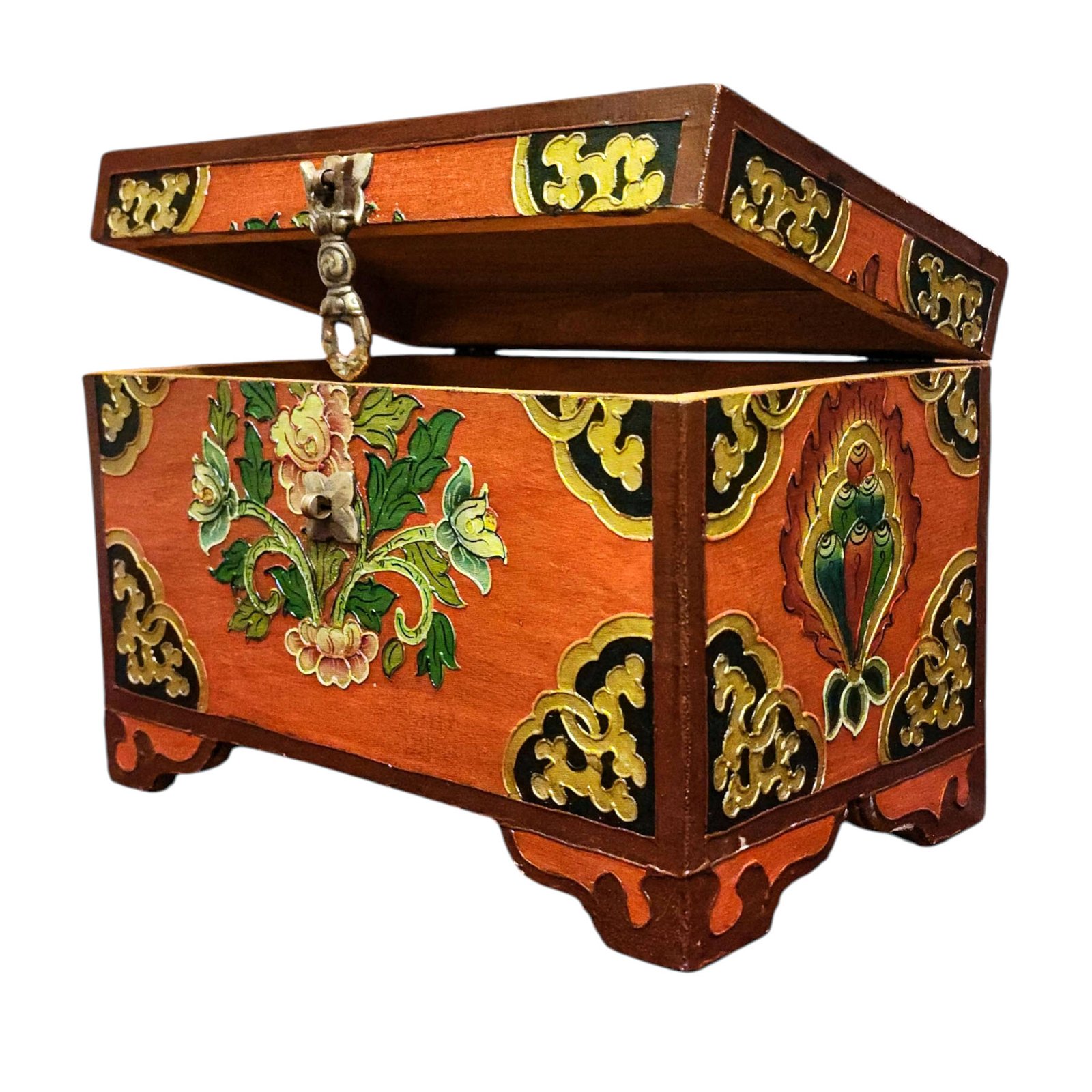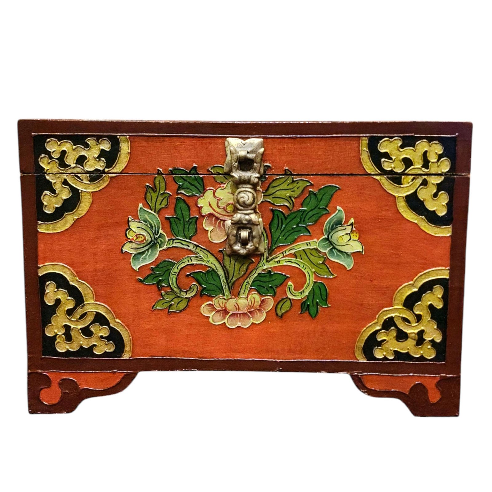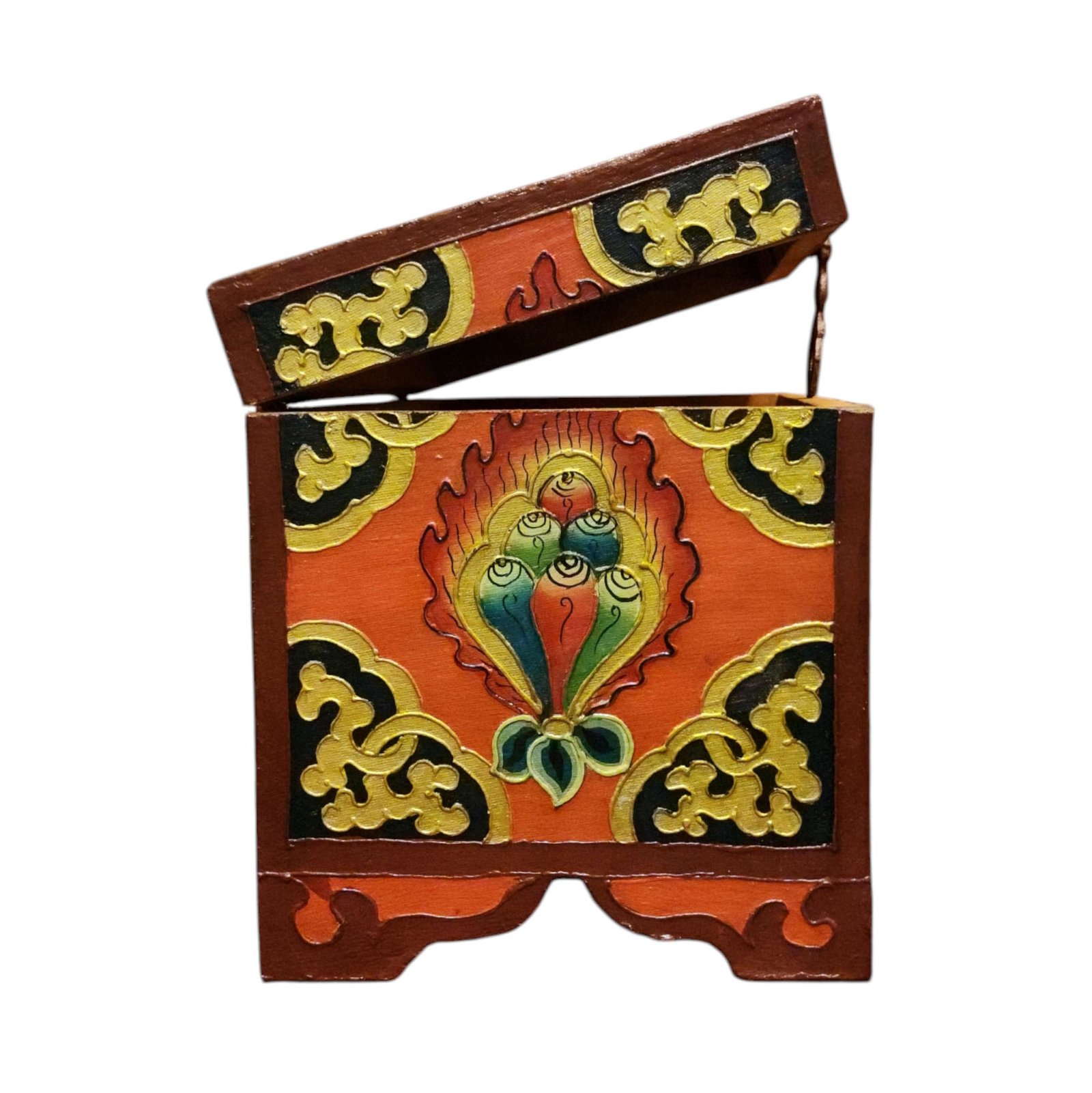 Buddhist Wooden Box with Lotus Design, Tibetan Style with Traditional Colors |
