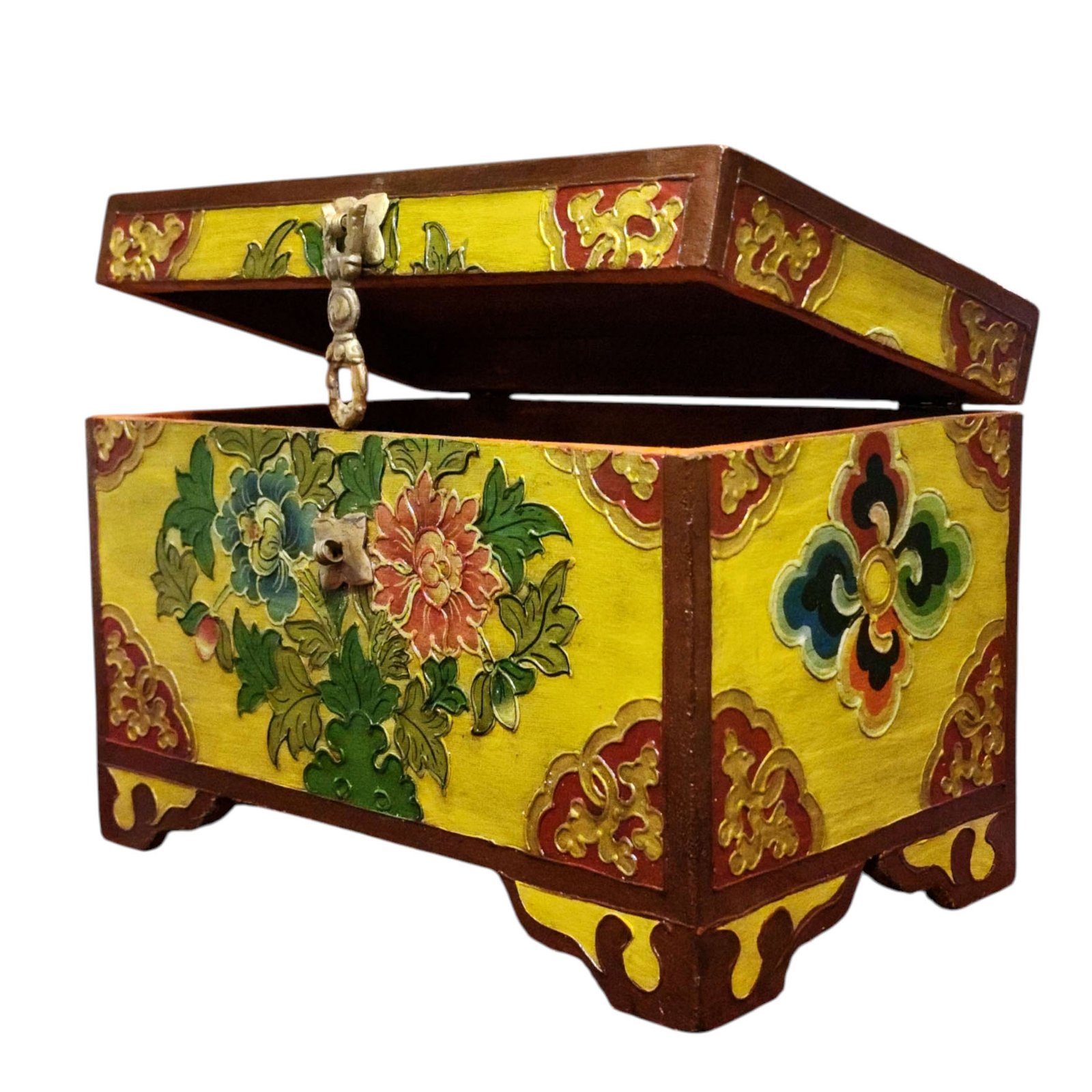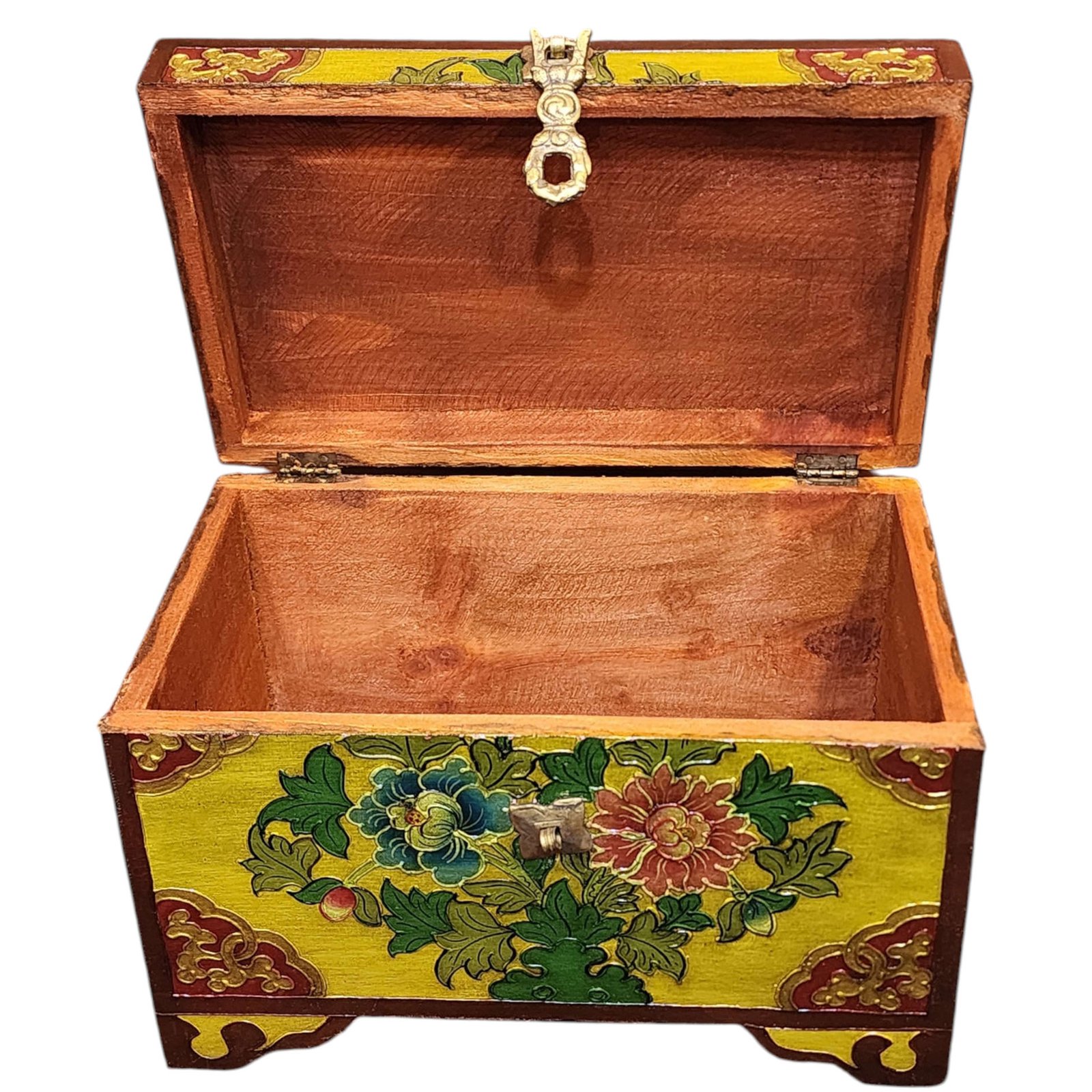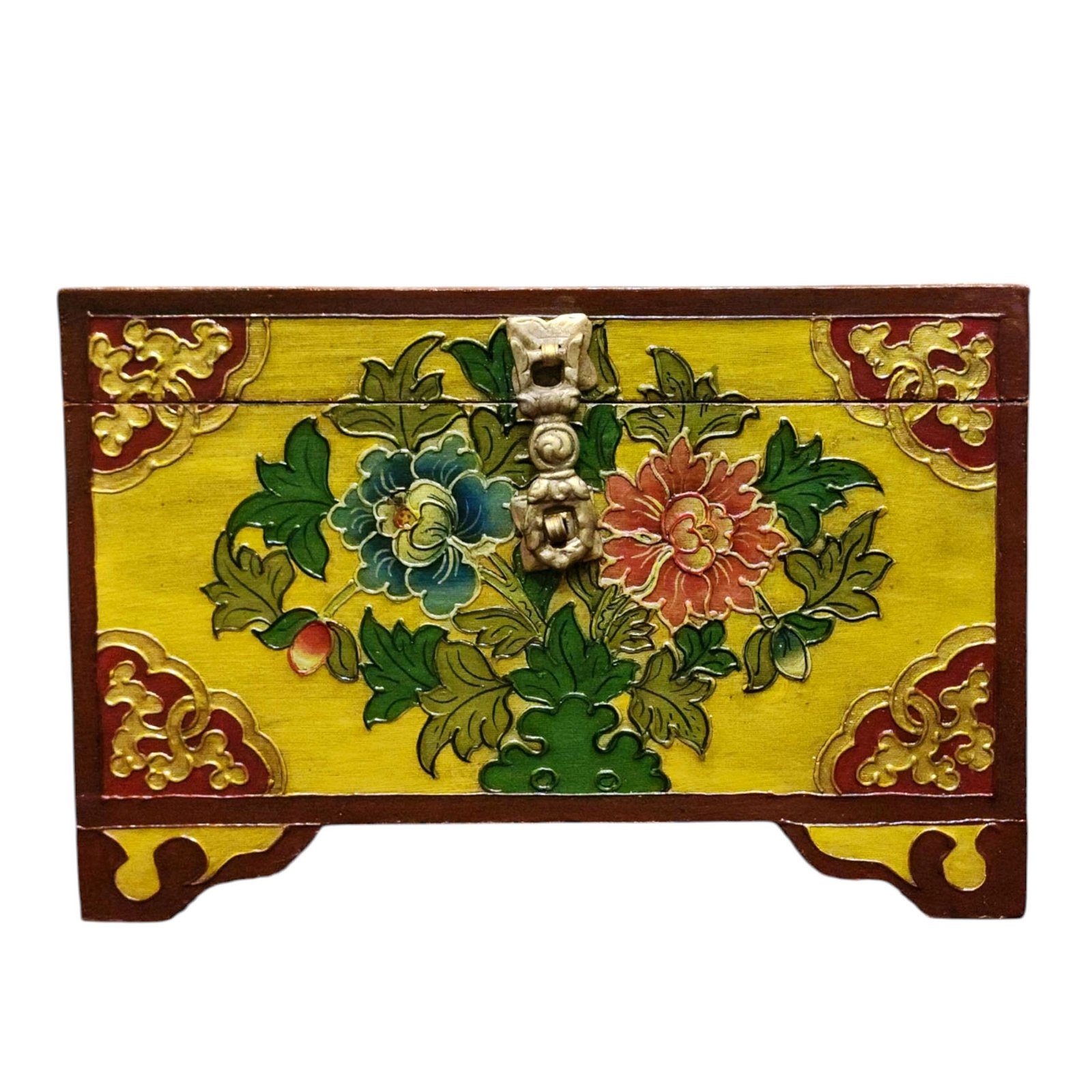 Buddhist Wooden Box with Flower Design, Tibetan Style with Traditional Colors |