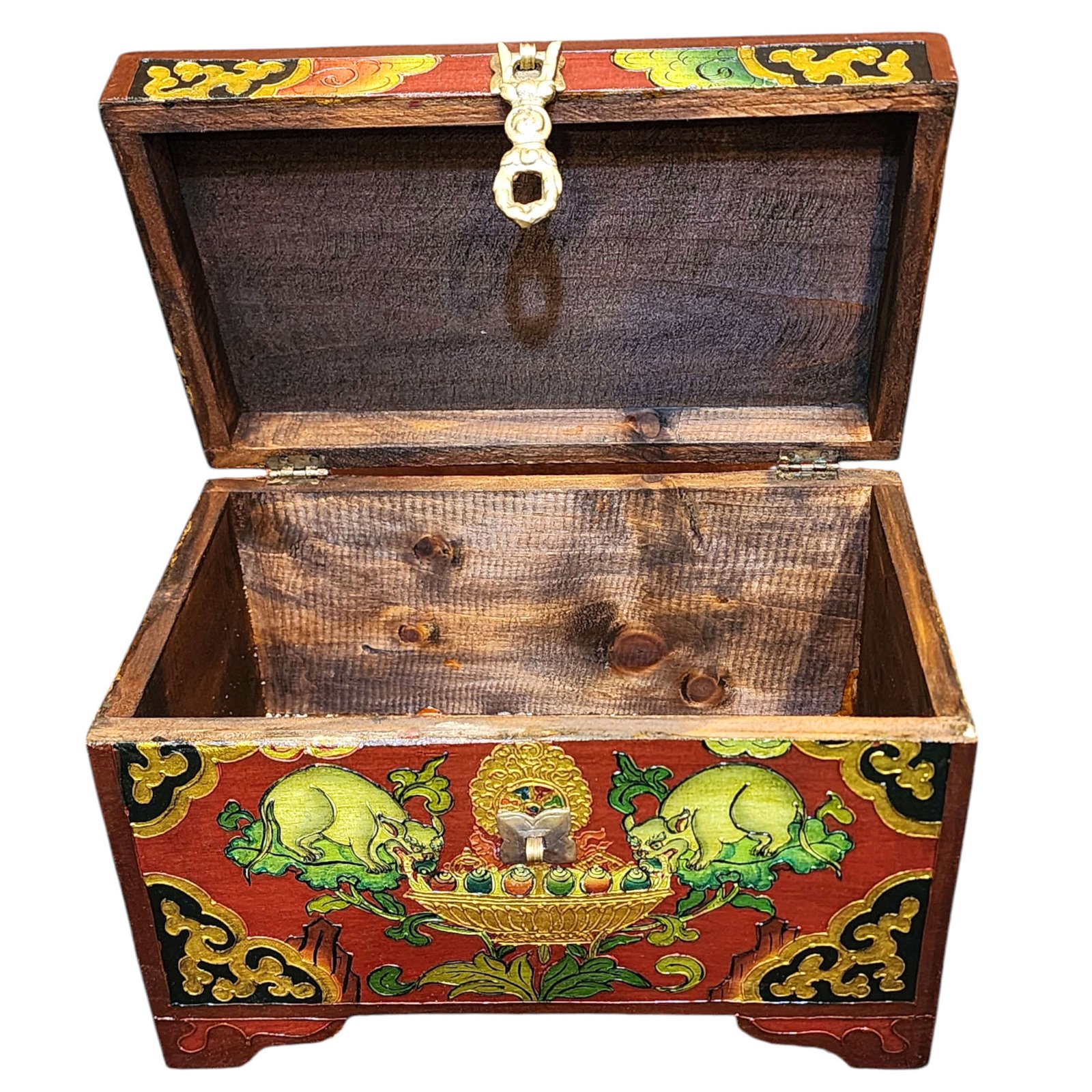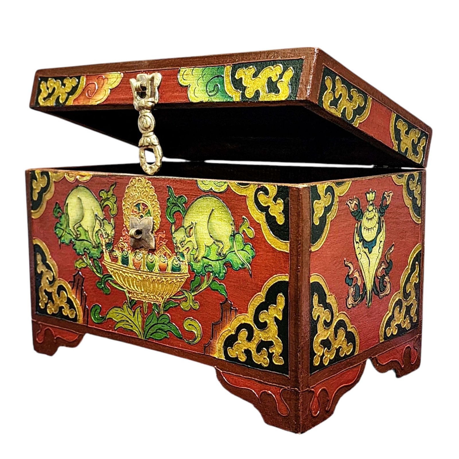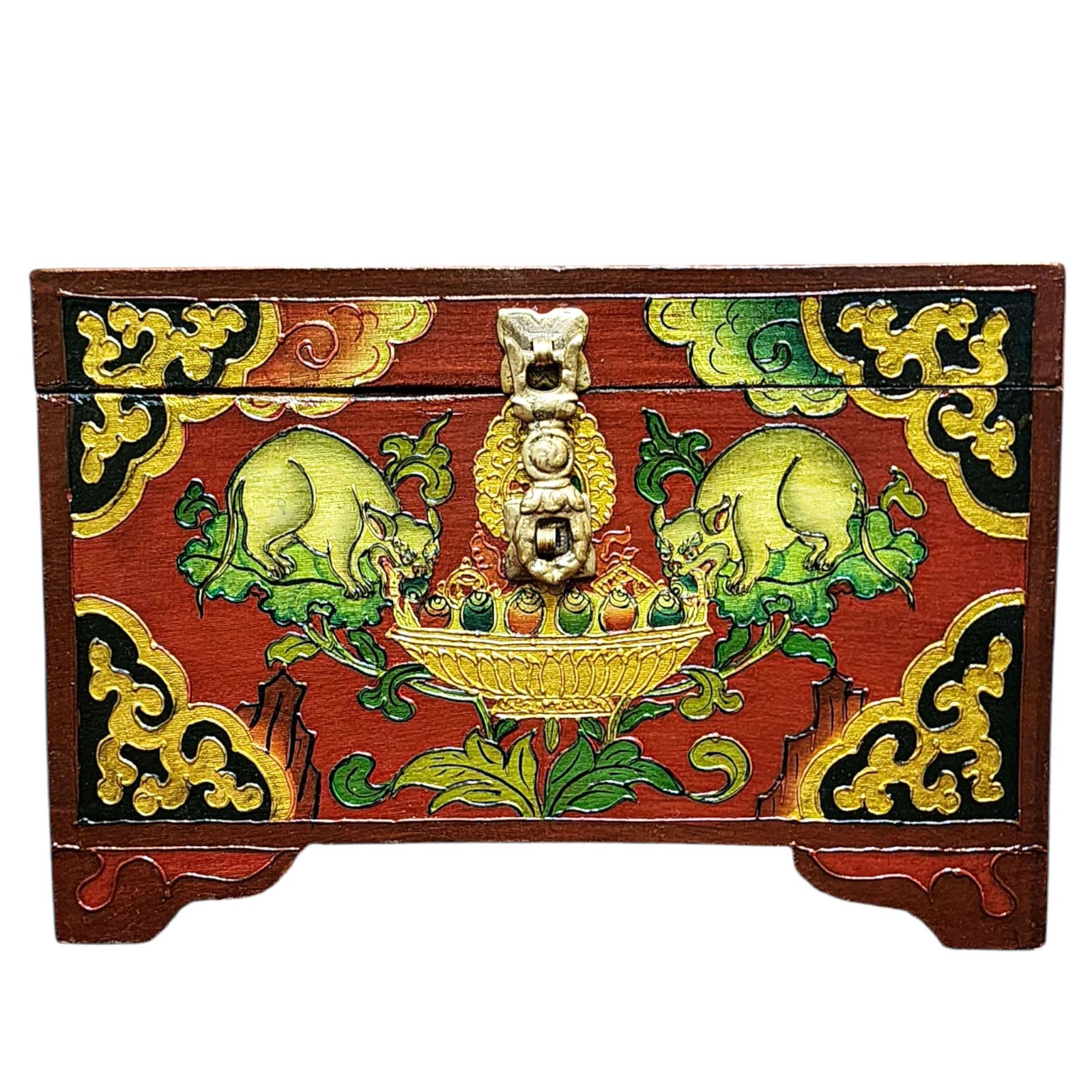 Buddhist Wooden Box with Animal Design, Tibetan Style with Traditional Colors |