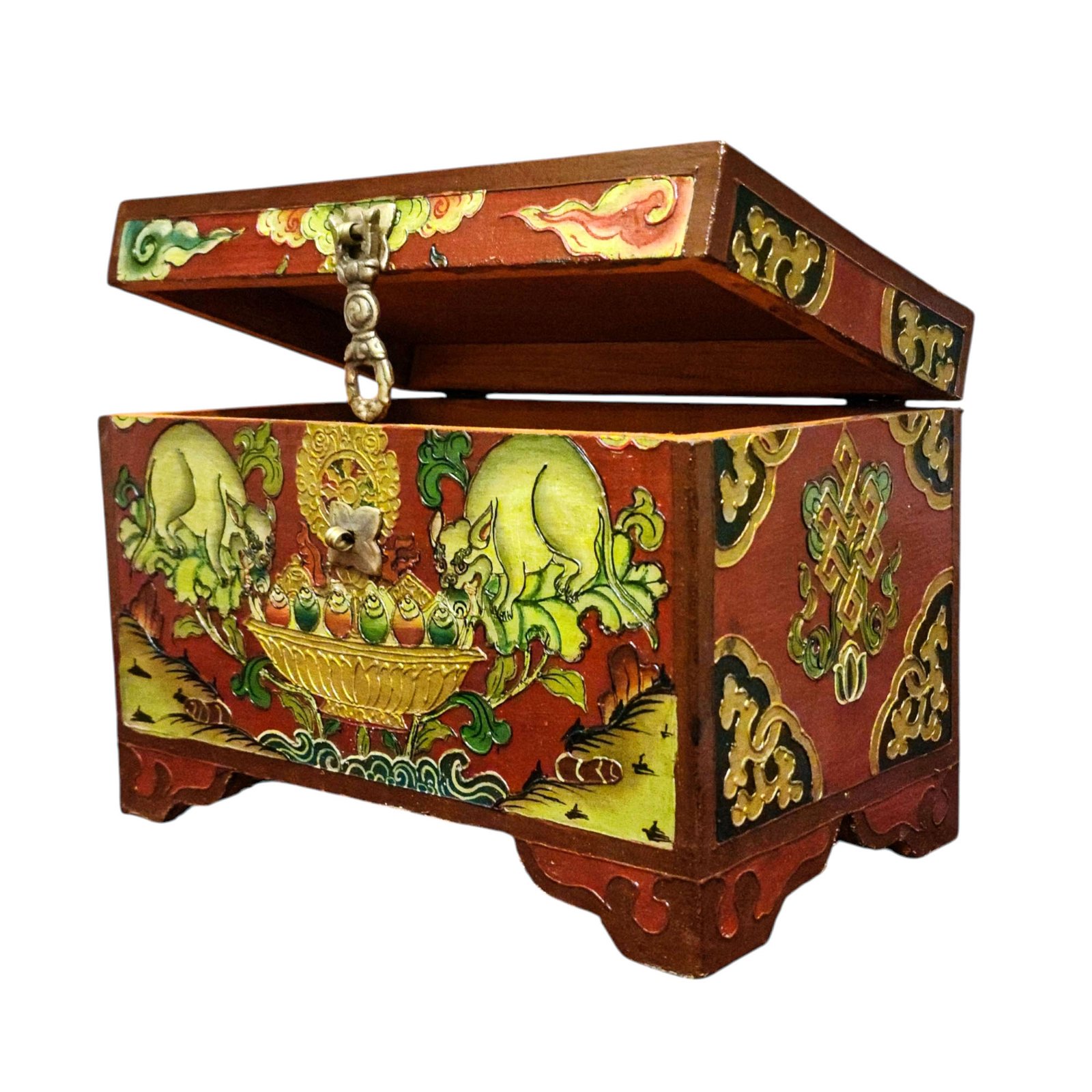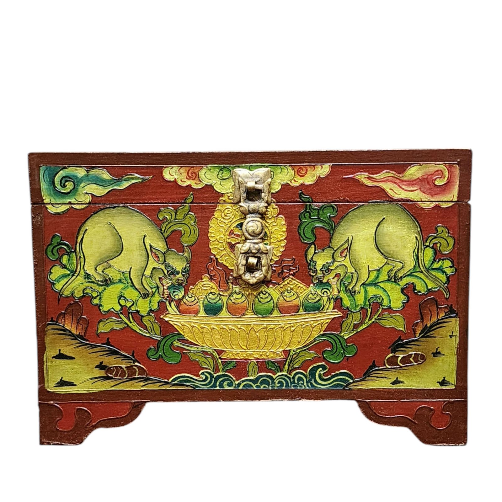 Buddhist Wooden Box with Animal Design, Tibetan Style with Traditional Colors |
