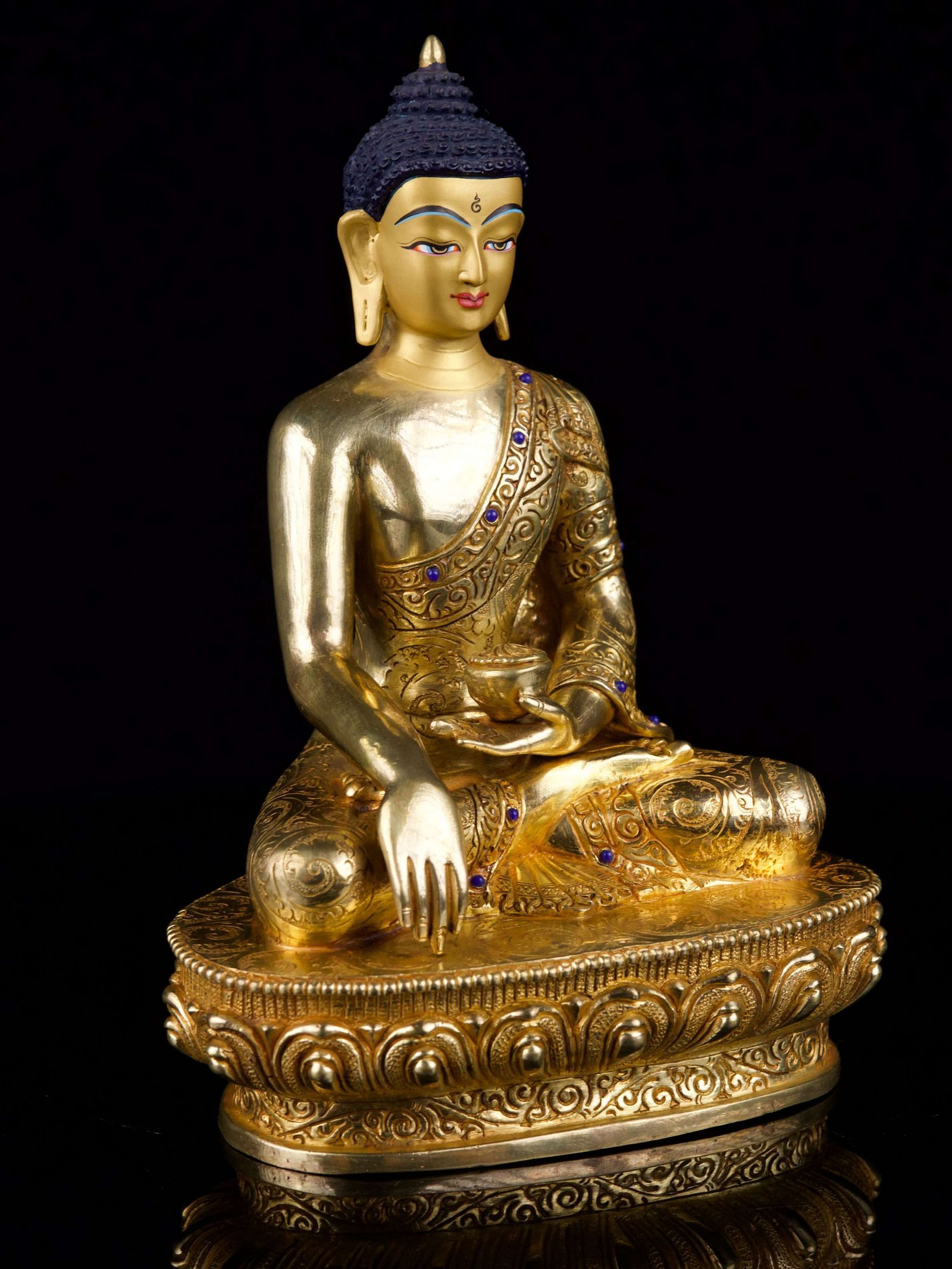Shakyamuni Buddha, Buddhist Handmade Statue, Full Gold Plated, Stone Setting, Face Painted , The Enlightened One and Teacher of Humanity
