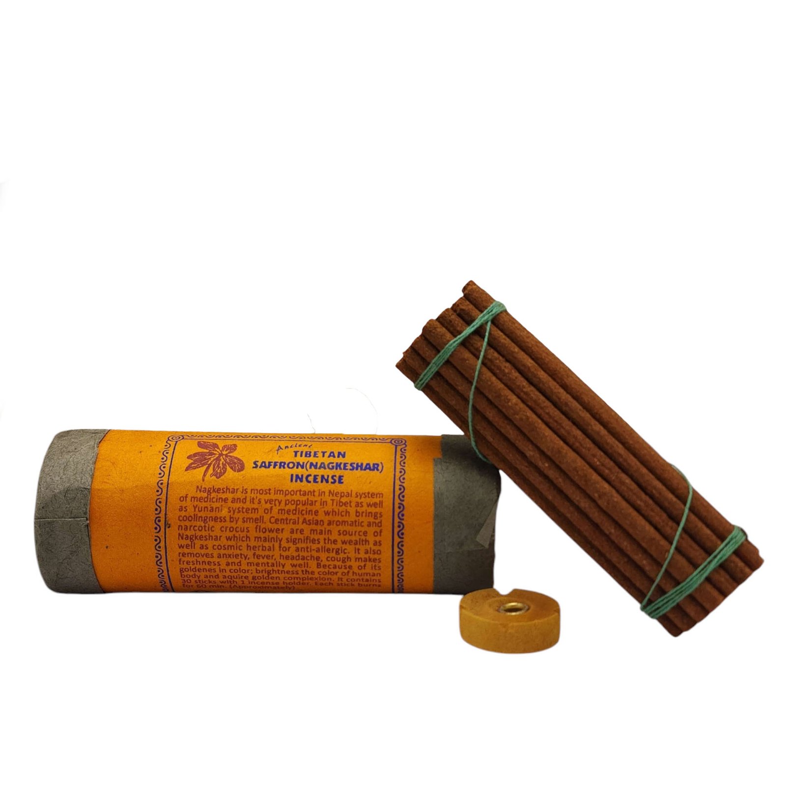 Tibetan Saffron, Nagkeshar Tibetan Herbal Incense, 30 Sticks, Incense Holder |