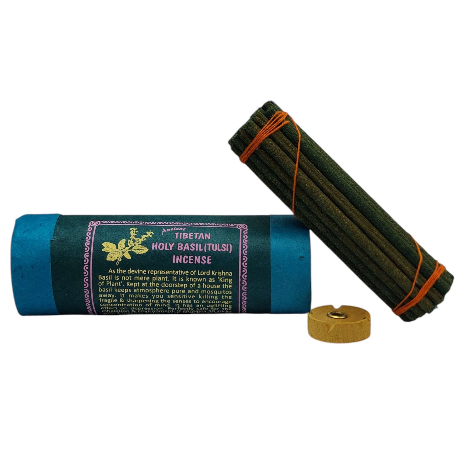 Tibetan Holy Basil Tulsi Tibetan Herbal Incense, 30 Sticks, Incense Holder |