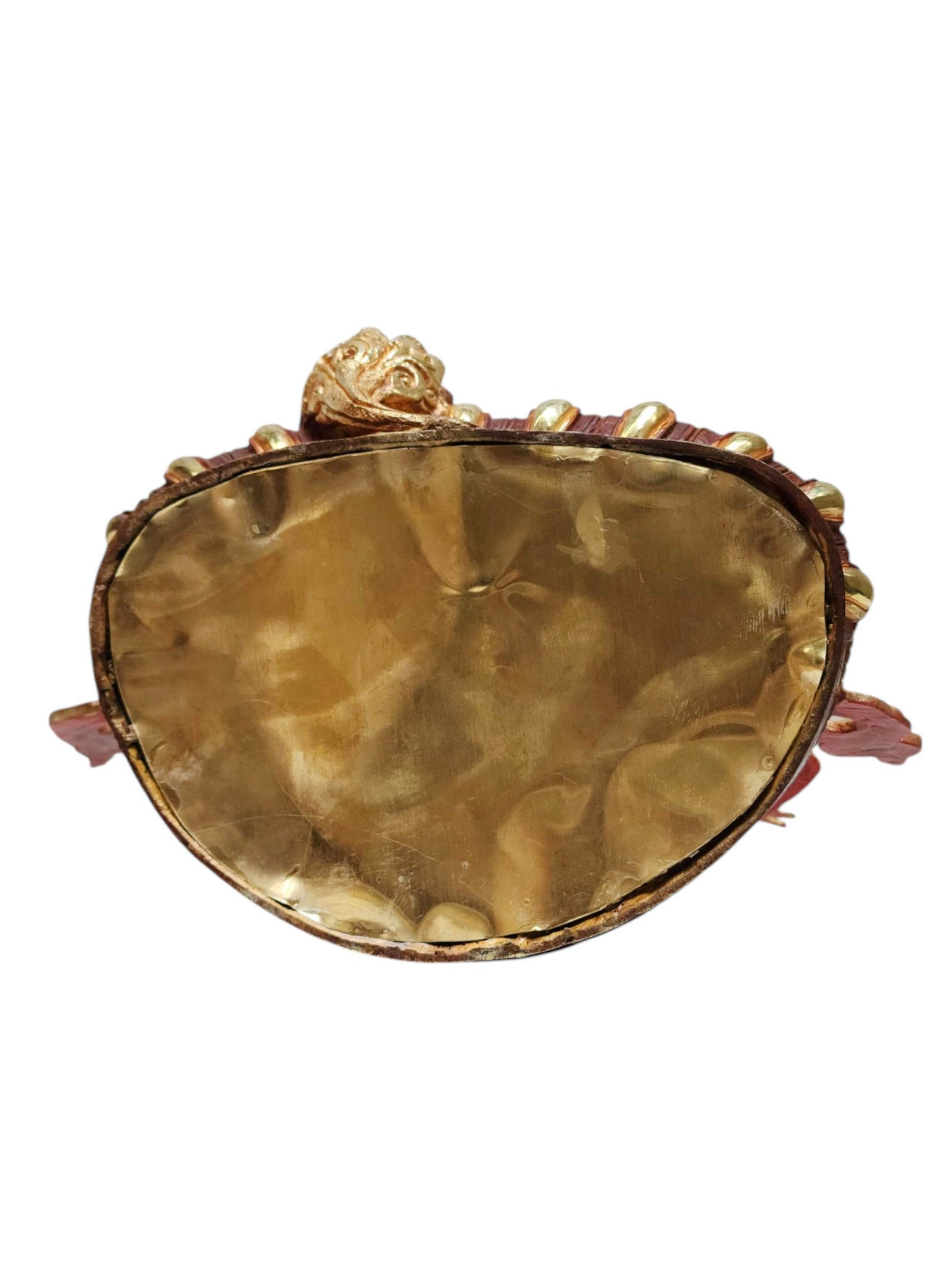 In the realm of Buddhist statues, this technique holds additional significance as it distinguishes the golden-plated body from the oxidized or maroon-painted clothing. This visual separation conveys the contrast between the divine purity of the body and the modest attire symbolizing the humble lifestyle of Buddhist monks. The partly fire gold gilding not only adds exquisite detail and elegance but also embodies the deep cultural and spiritual meaning associated with these treasured artifacts. Read More