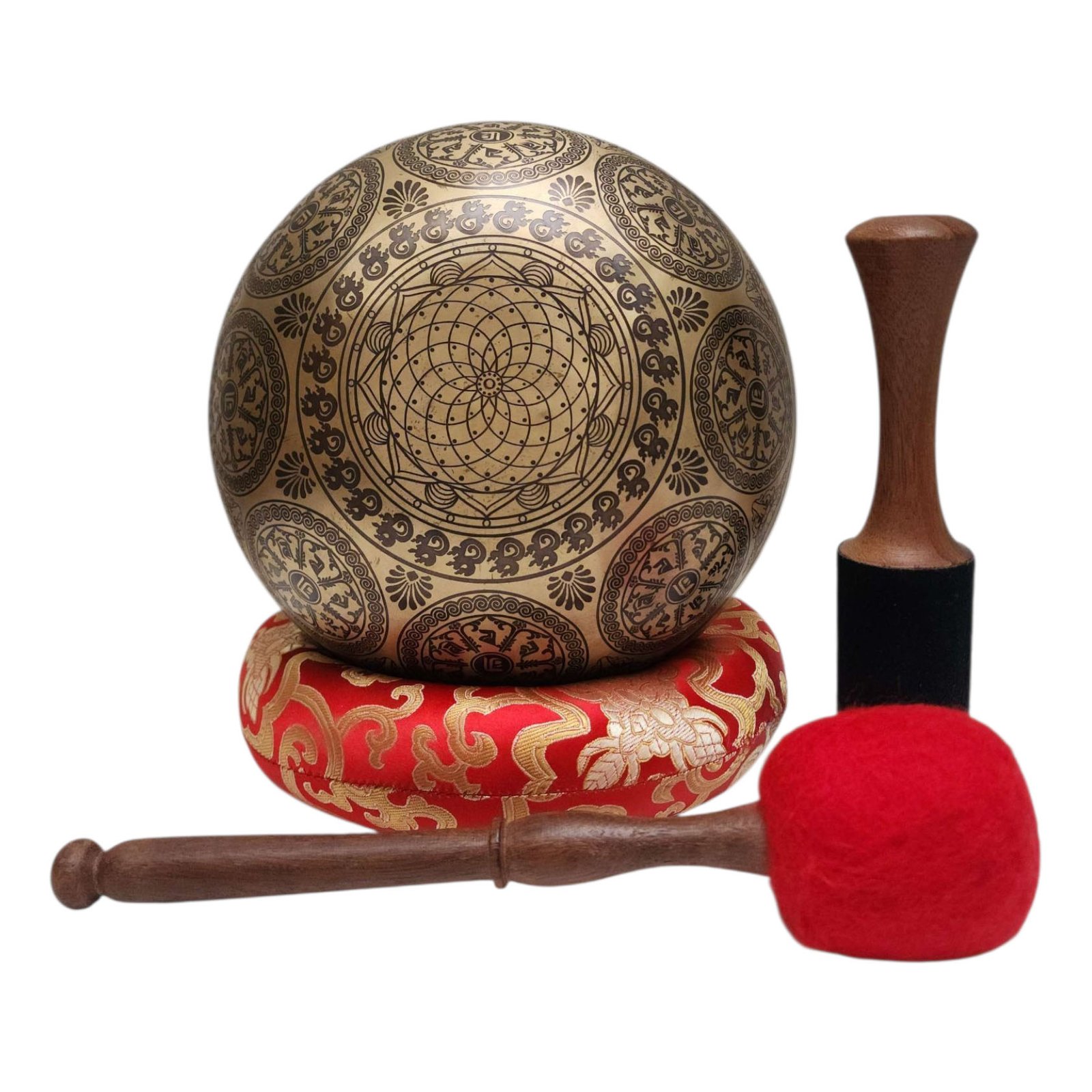 The Jambati Singing Bowl you are purchasing includes a cushion, a wooden playing mallet, and a felt-hitting mallet for playing the bowl. If you require additional accessories, you can browse the options above and purchase them separately. Should you have any further questions or need assistance, please don't hesitate to let us know. Read More