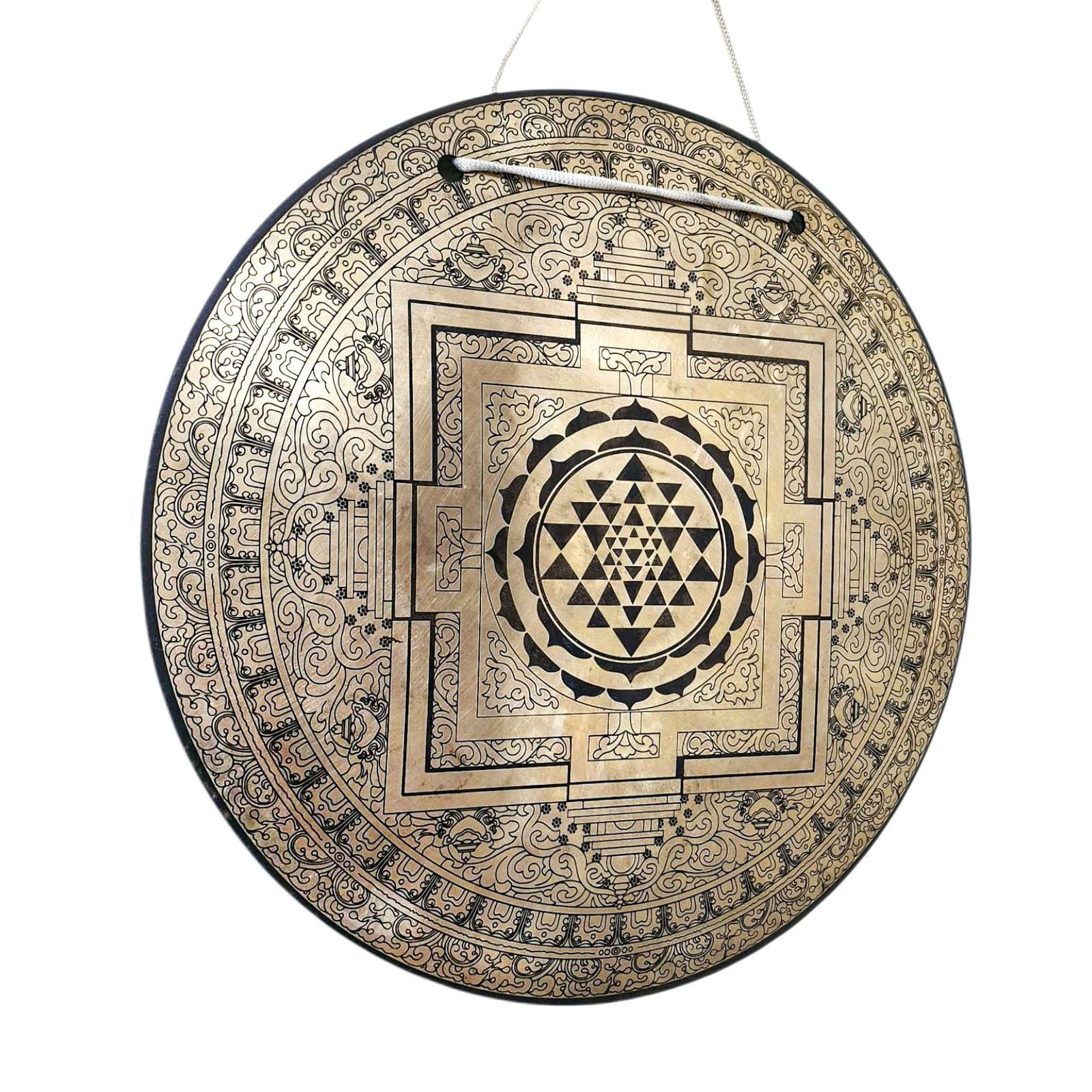 Handmade Gong, Bronze Wind Or Flat Gong, Sri Yantra Etching Carving |
