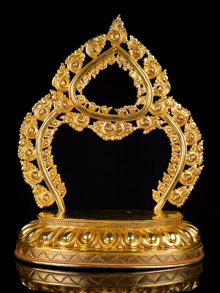 This Simhanada Lokeshvara is finished with full gold plating. also known as mercury gold plating or fire gold plating. This traditional technique involves the application of a genuine layer of gold onto the Simhanada Lokeshvara. Referred to as mercury gold plating, it is considered the correct and authentic form of gold plating in Nepal. Despite being more expensive than electroplating, this traditional mercury gold plating is gaining popularity again in Nepal. People are drawn to its authenticity, longevity, and the unmatched beauty it brings to the Simhanada Lokeshvara. The resurgence of interest in this traditional form of gold plating reflects a growing appreciation for the craftsmanship and cultural heritage of Nepal