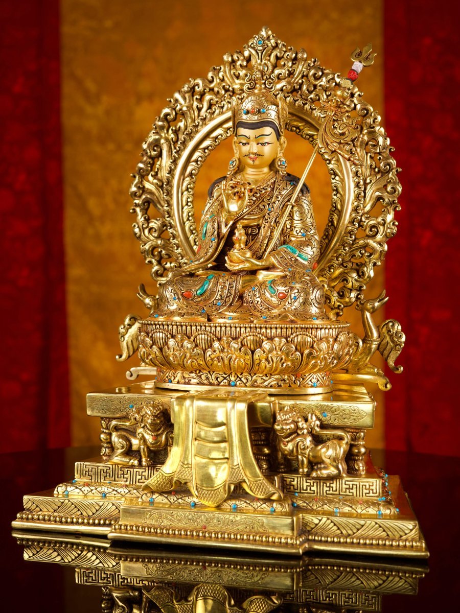 This Padmasambhava is finished with full gold plating. also known as mercury gold plating or fire gold plating. This traditional technique involves the application of a genuine layer of gold onto the Padmasambhava. Referred to as mercury gold plating, it is considered the correct and authentic form of gold plating in Nepal. Despite being more expensive than electroplating, this traditional mercury gold plating is gaining popularity again in Nepal. People are drawn to its authenticity, longevity, and the unmatched beauty it brings to the Padmasambhava. The resurgence of interest in this traditional form of gold plating reflects a growing appreciation for the craftsmanship and cultural heritage of Nepal Read More