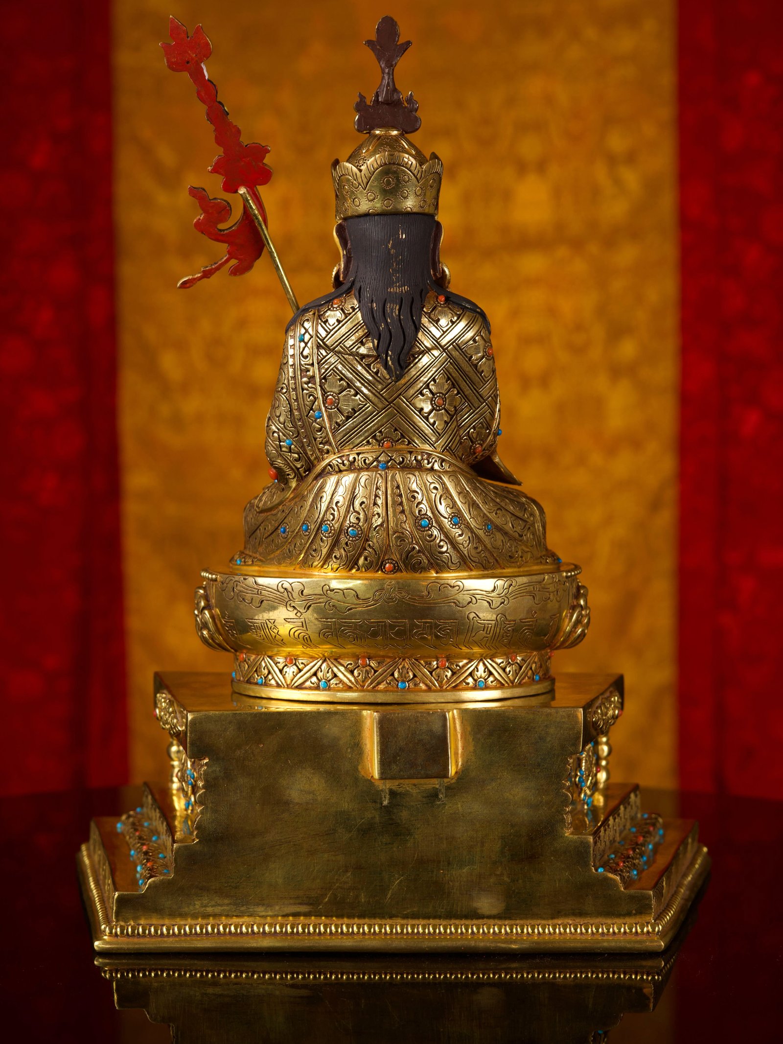 The Padmasambhava is adorned with an exquisite array of semi-precious stones, including turquoise, coral, and lapis lazuli. These stones are carefully selected and meticulously placed on the Padmasambhava's surface, adding a touch of opulence and enhancing its overall beauty. Each stone is thoughtfully positioned using a high-quality adhesive, ensuring secure and long-lasting attachment. The vibrant colors and unique patterns of the stones create a captivating contrast against the backdrop of the Padmasambhava, elevating its visual appeal and making it truly eye-catching. Read More