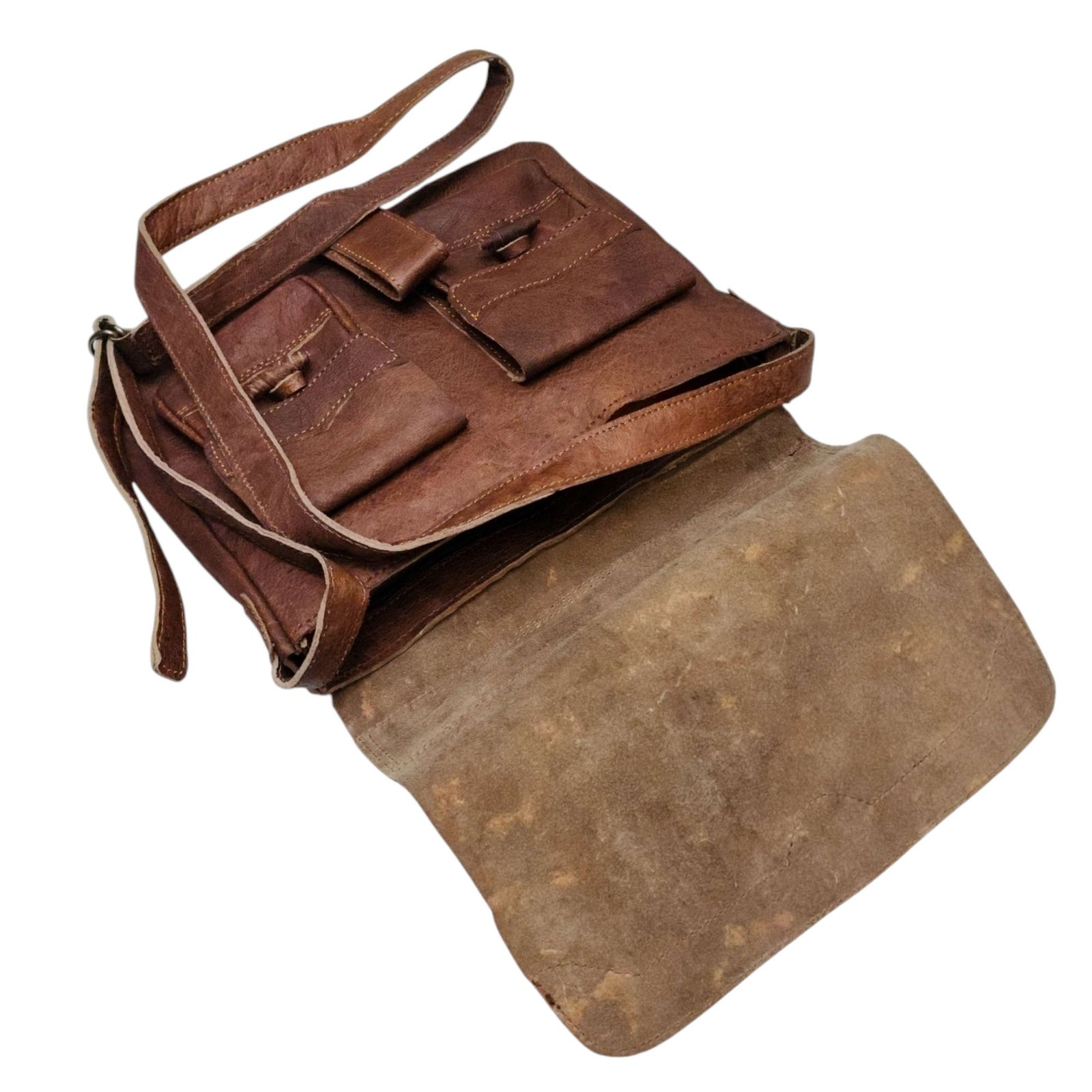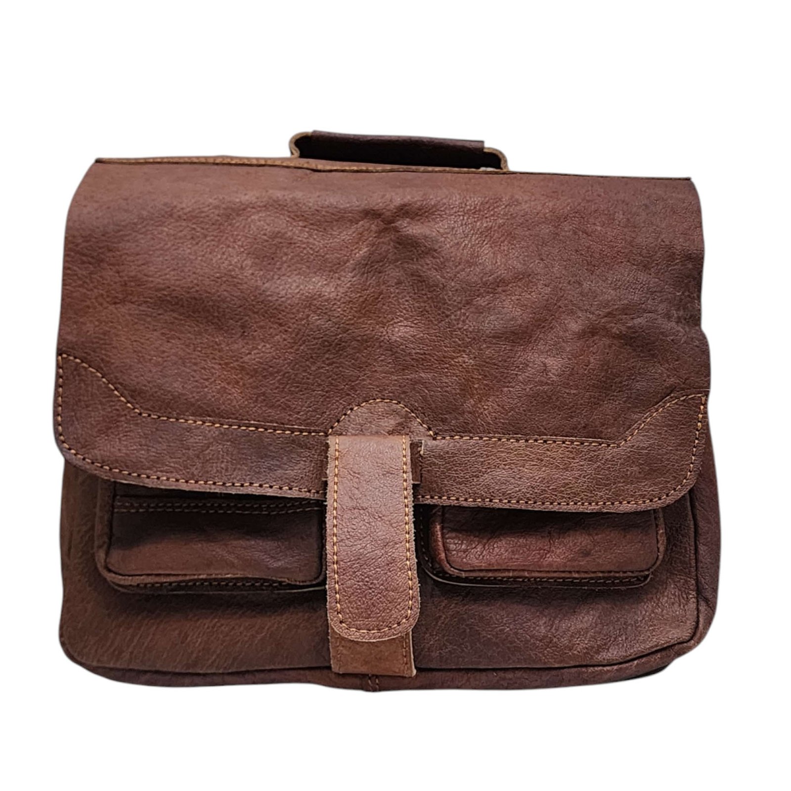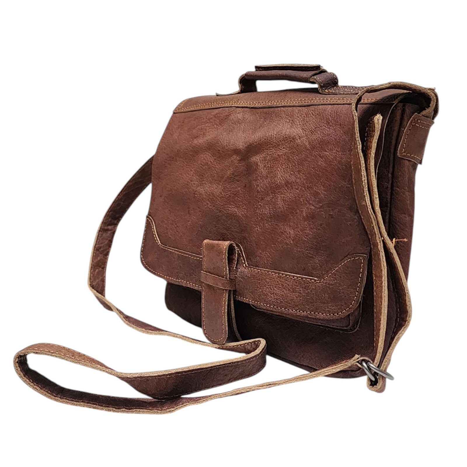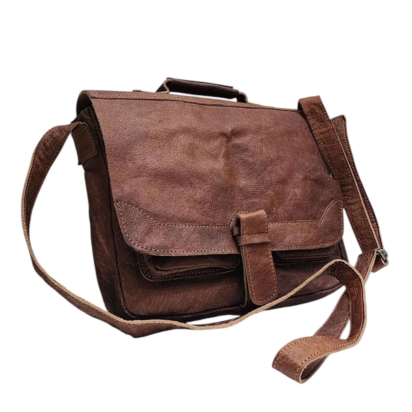 Himalayan Yak Leather office Shoulder Bag 3 Pockets, 1 Zip, with Hook Lock |