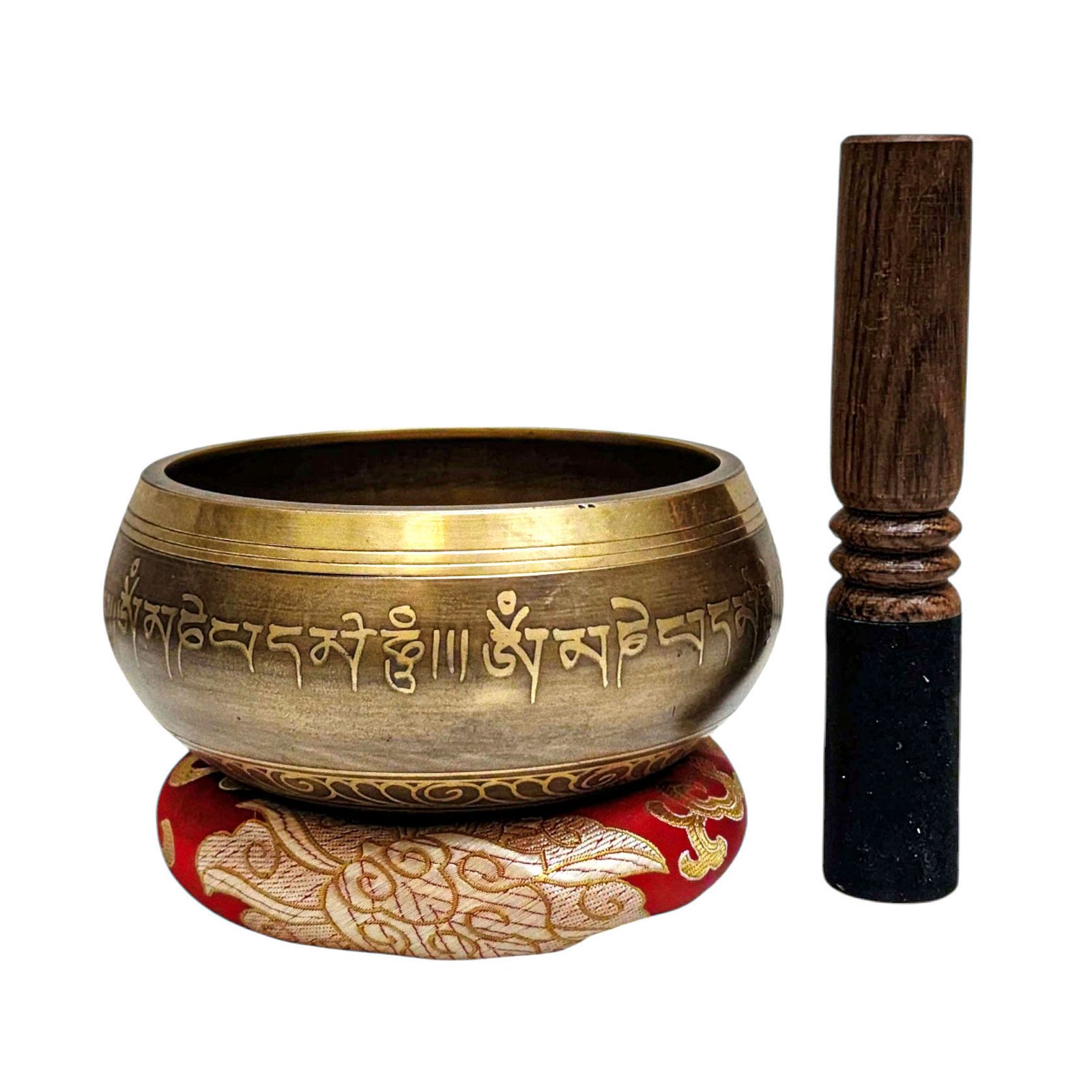 Buddhist Machine Made Singing Bowl, Buddha Eye Carved Inside, Select Accessories |