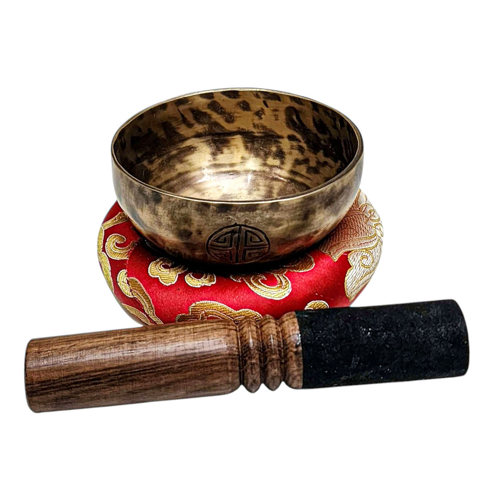 Full Moon Bowl, Moon Carved, Buddhist Hand Beaten Singing Bowl, Antique Finishing, Select Accessories |