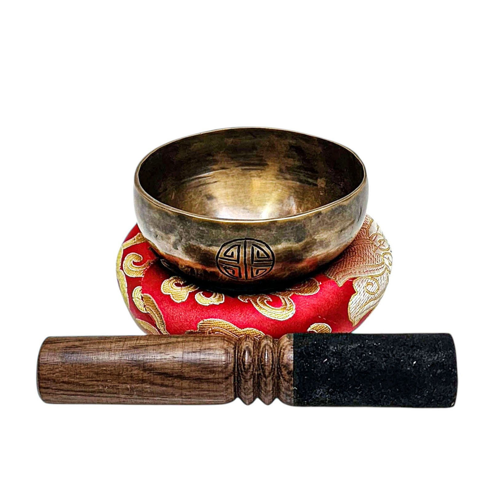Full Moon Bowl, Moon Carved, Buddhist Hand Beaten Singing Bowl, Antique Finishing, Select Accessories |