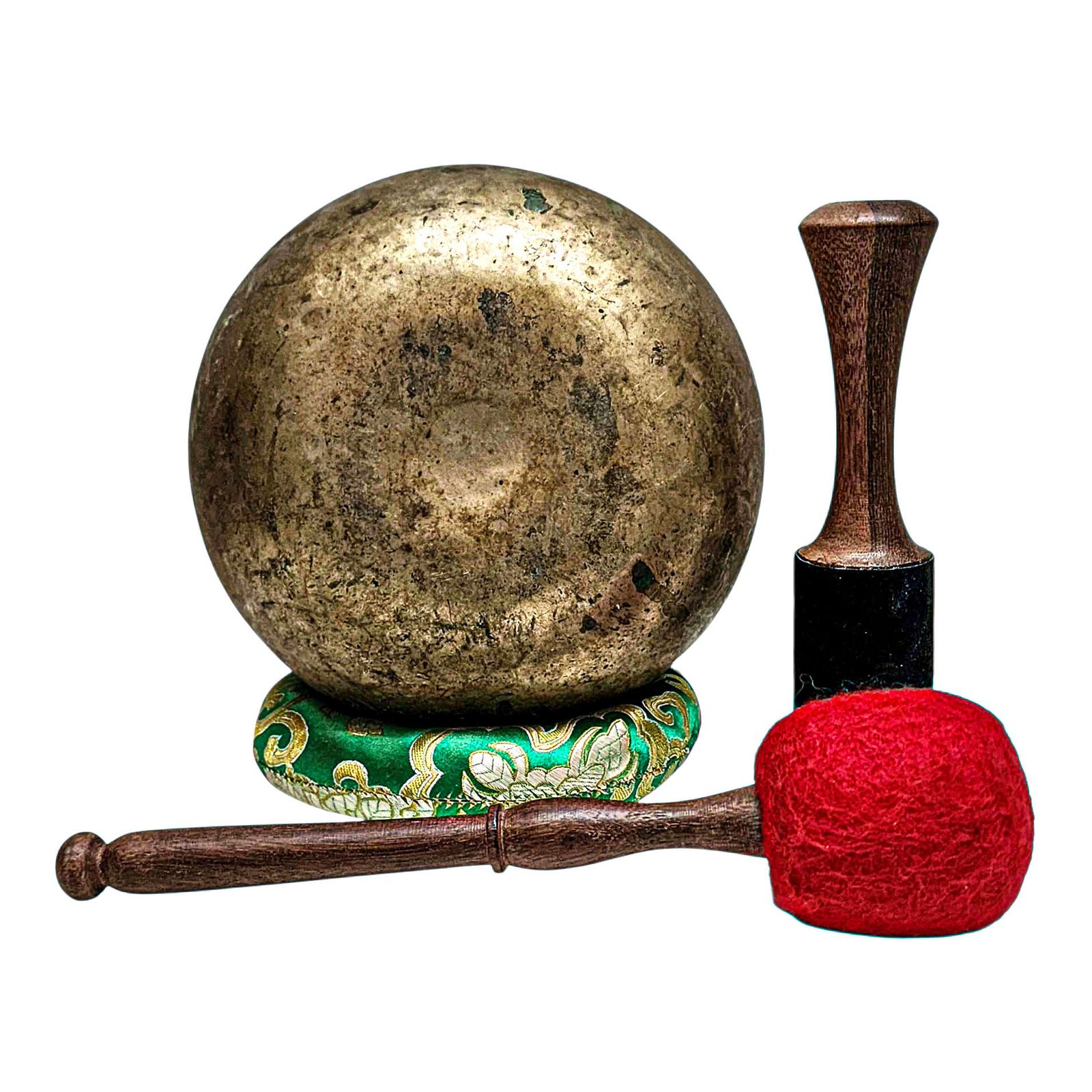 The Jambati Singing Bowl you are purchasing includes a cushion, a wooden playing mallet, and a felt-hitting mallet for playing the bowl. If you require additional accessories, you can browse the options above and purchase them separately. Should you have any further questions or need assistance, please don't hesitate to let us know. Read More