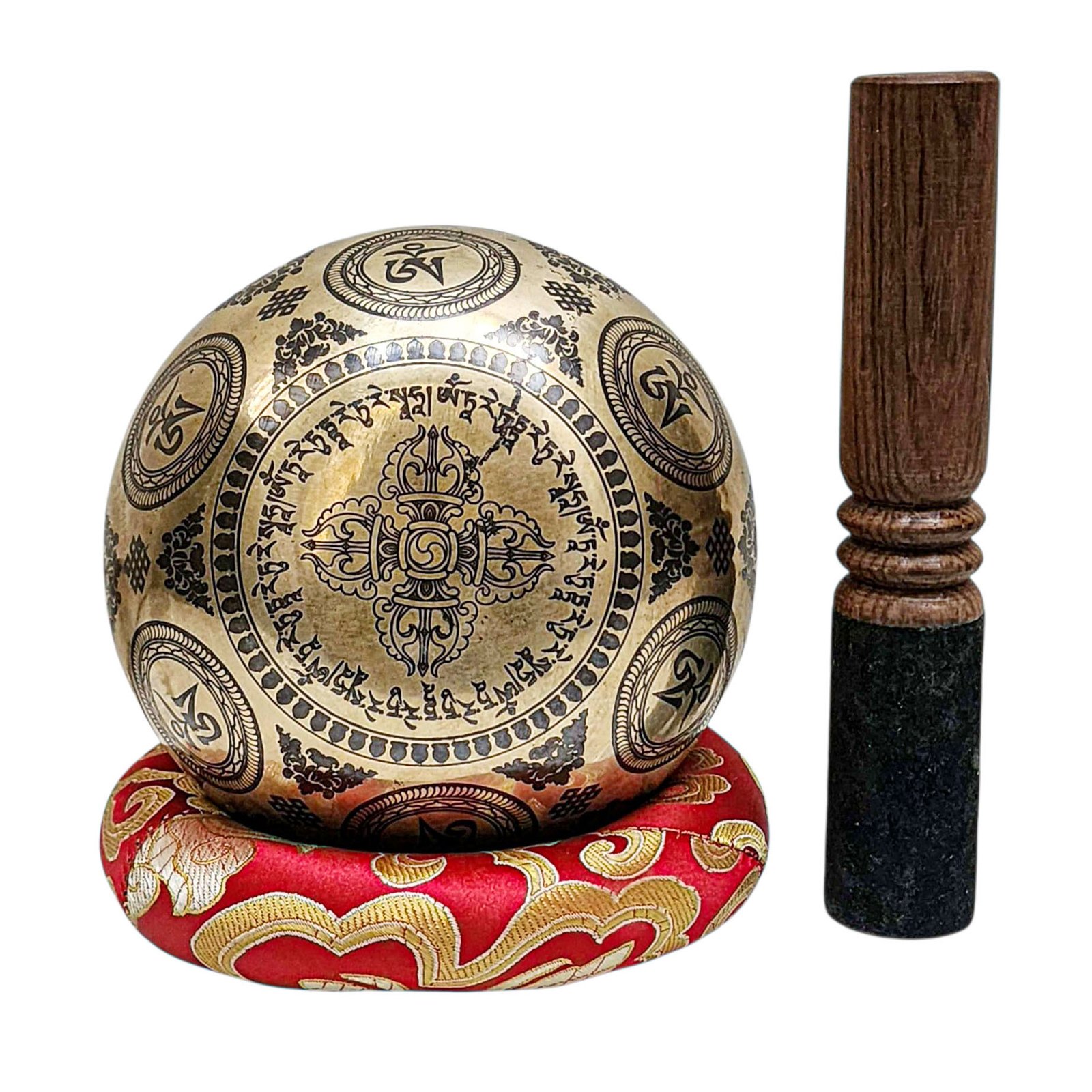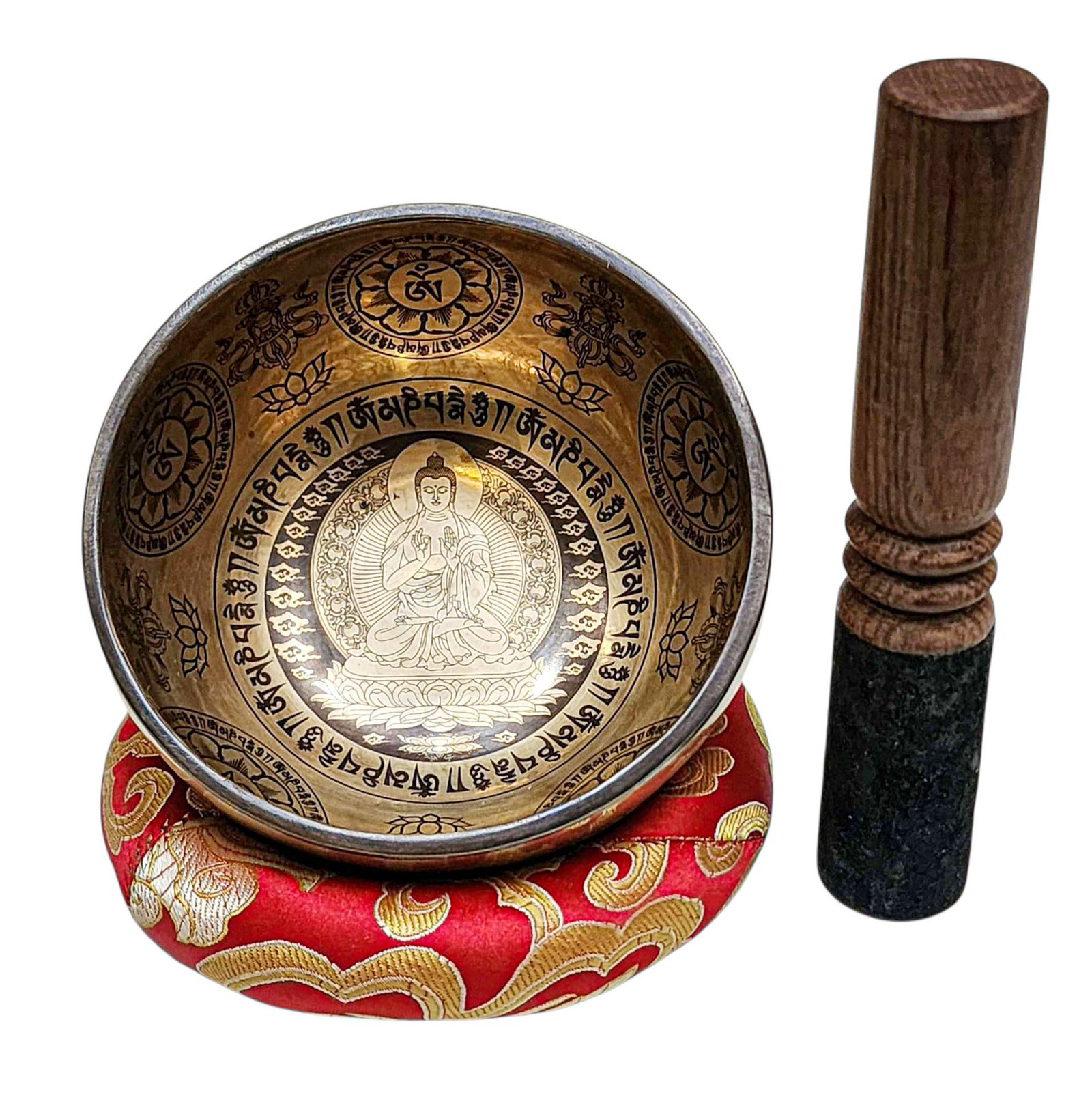 The Jambati Singing Bowl you are purchasing includes a cushion, a wooden playing mallet, and a felt-hitting mallet for playing the bowl. If you require additional accessories, you can browse the options above and purchase them separately. Should you have any further questions or need assistance, please don't hesitate to let us know. Read More