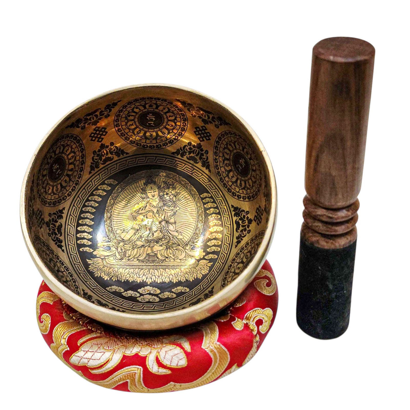 Singing Bowl, Buddhist Hand Beaten, with Fine Etching Carving, White Tara, Select Accessories |