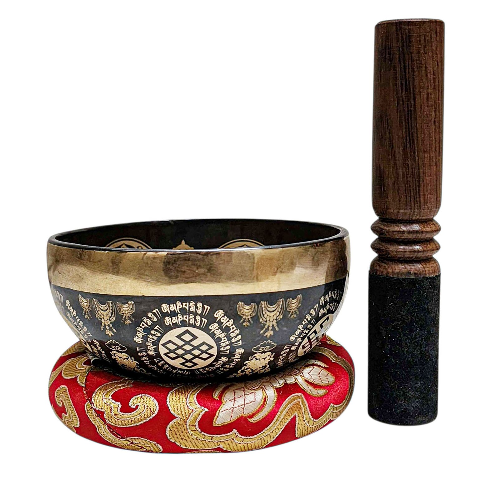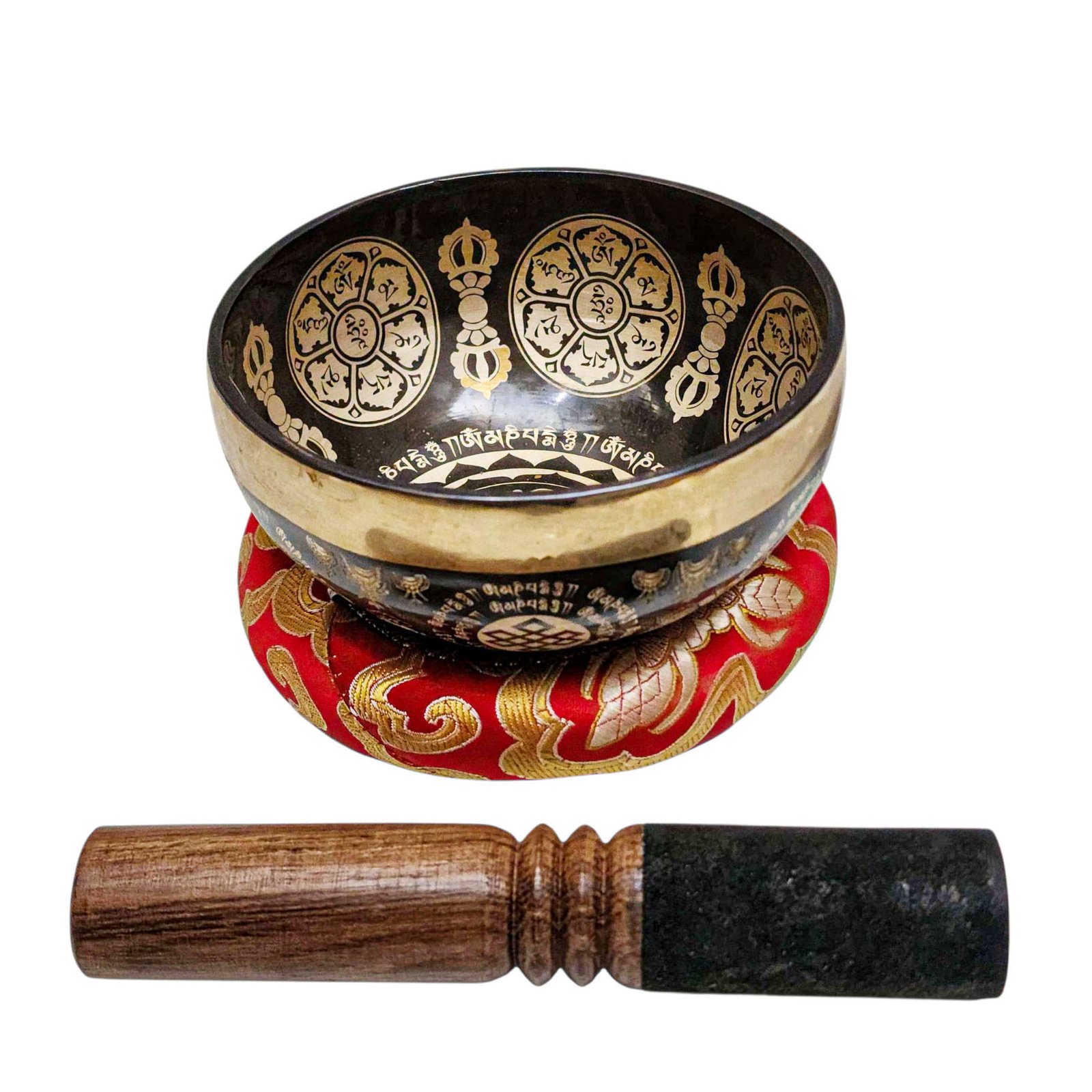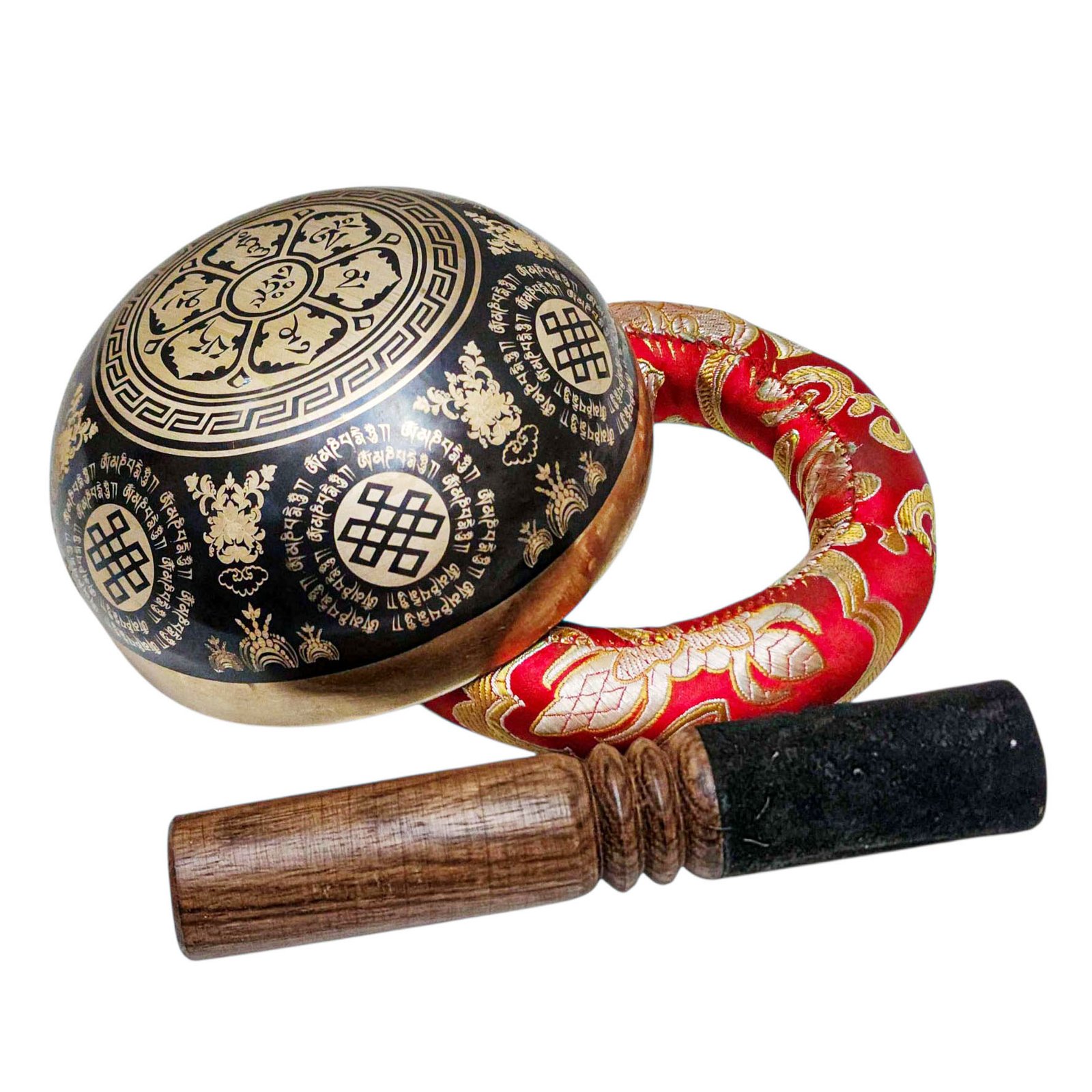 Singing Bowl, Buddhist Hand Beaten, with Fine Etching Carving, Dharmachakra, Select Accessories |