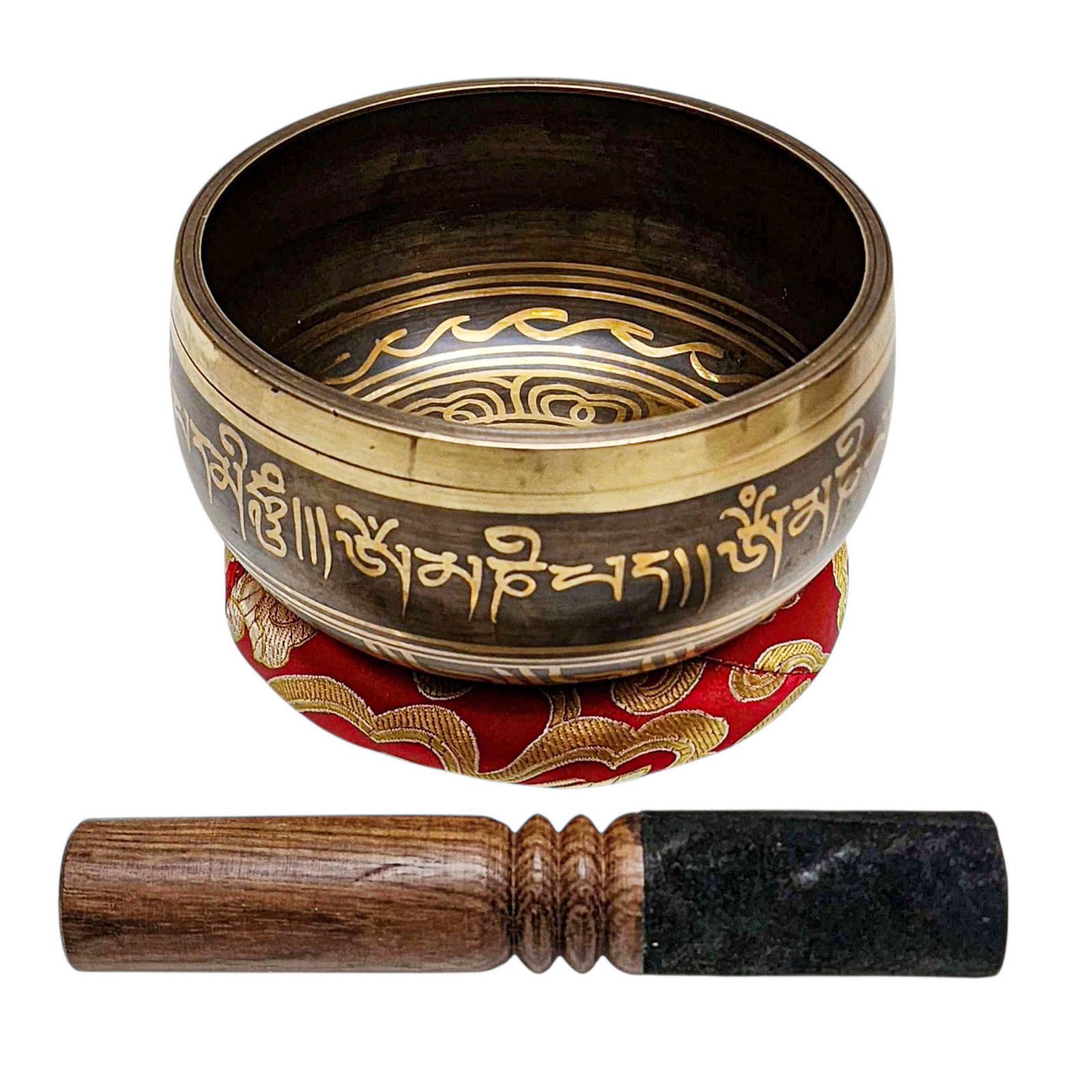 The Jambati Singing Bowl you are purchasing includes a cushion, a wooden playing mallet, and a felt-hitting mallet for playing the bowl. If you require additional accessories, you can browse the options above and purchase them separately. Should you have any further questions or need assistance, please don't hesitate to let us know. Read More