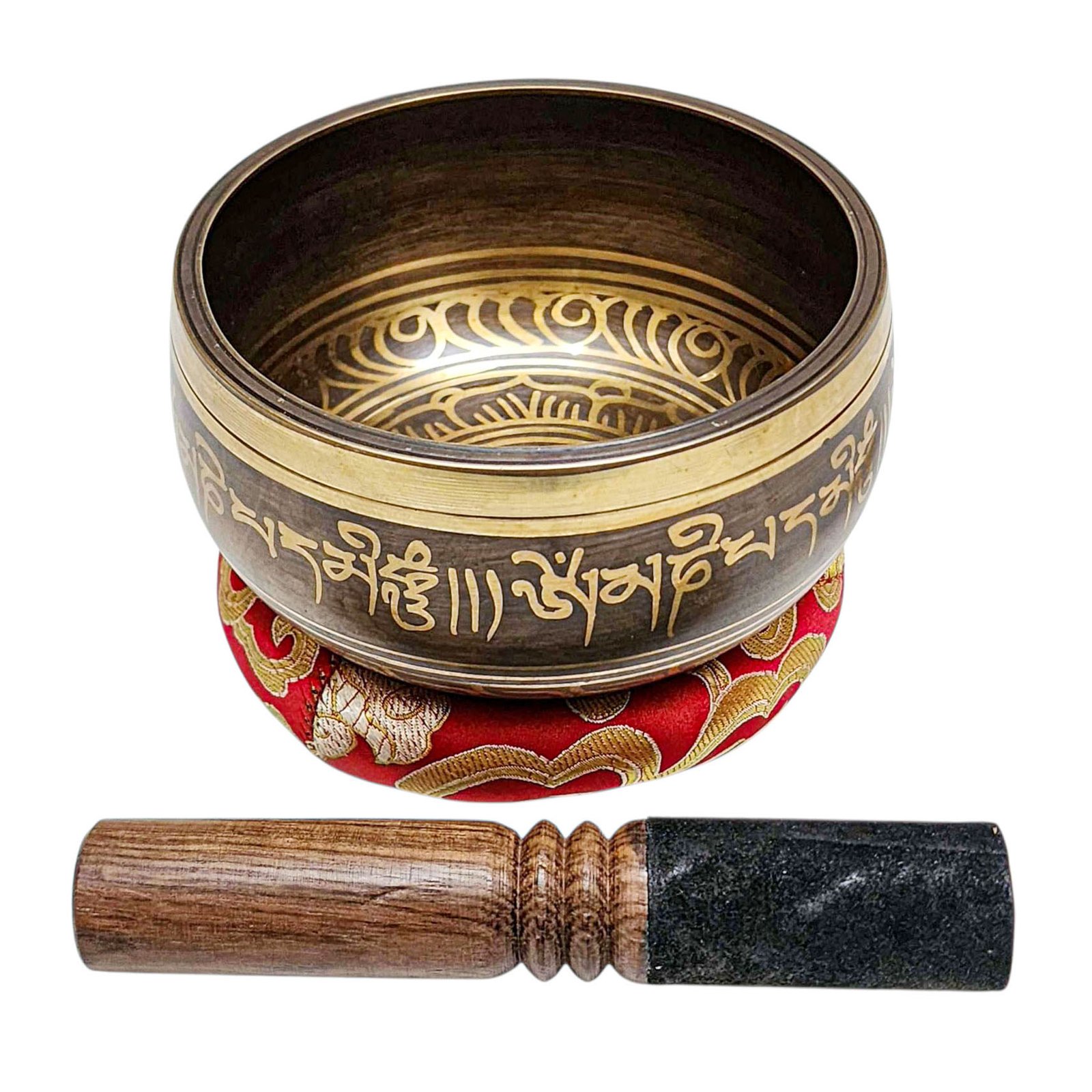 The Jambati Singing Bowl you are purchasing includes a cushion, a wooden playing mallet, and a felt-hitting mallet for playing the bowl. If you require additional accessories, you can browse the options above and purchase them separately. Should you have any further questions or need assistance, please don't hesitate to let us know. Read More