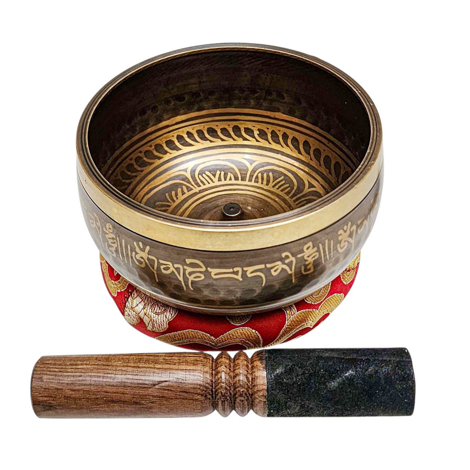 Buddhist Machine Made Singing Bowl, Lingam Bowl Or Japanese Bowl Carved Inside, Select Accessories |