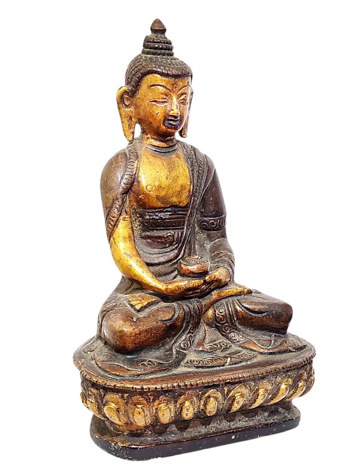 Amitabha Buddha, Buddhist Miniature Statue, Partly Gold Plated, Antique Finishing , Buddha of Infinite Light: Symbol of Boundless Compassion