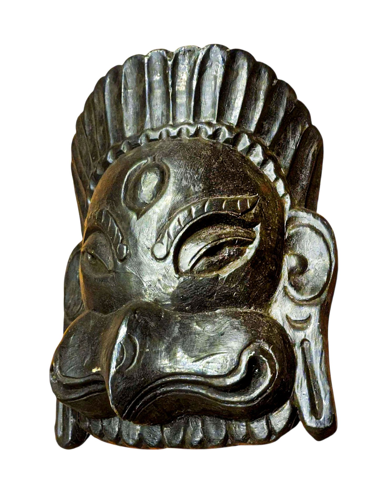 this Wooden Mask mask is Nepali handmade mask and we are Introducing our exquisite collection of Nepali handmade hand-carved wooden Buddhist masks and wall hangings, meticulously crafted by skilled artisans. Each piece in this collection reflects the rich cultural heritage and spiritual significance of Nepal. These masks and wall hangings are not just decorative pieces but hold deep symbolic meaning, making them perfect for adding an authentic touch to your living spaces or meditation rooms. Read More