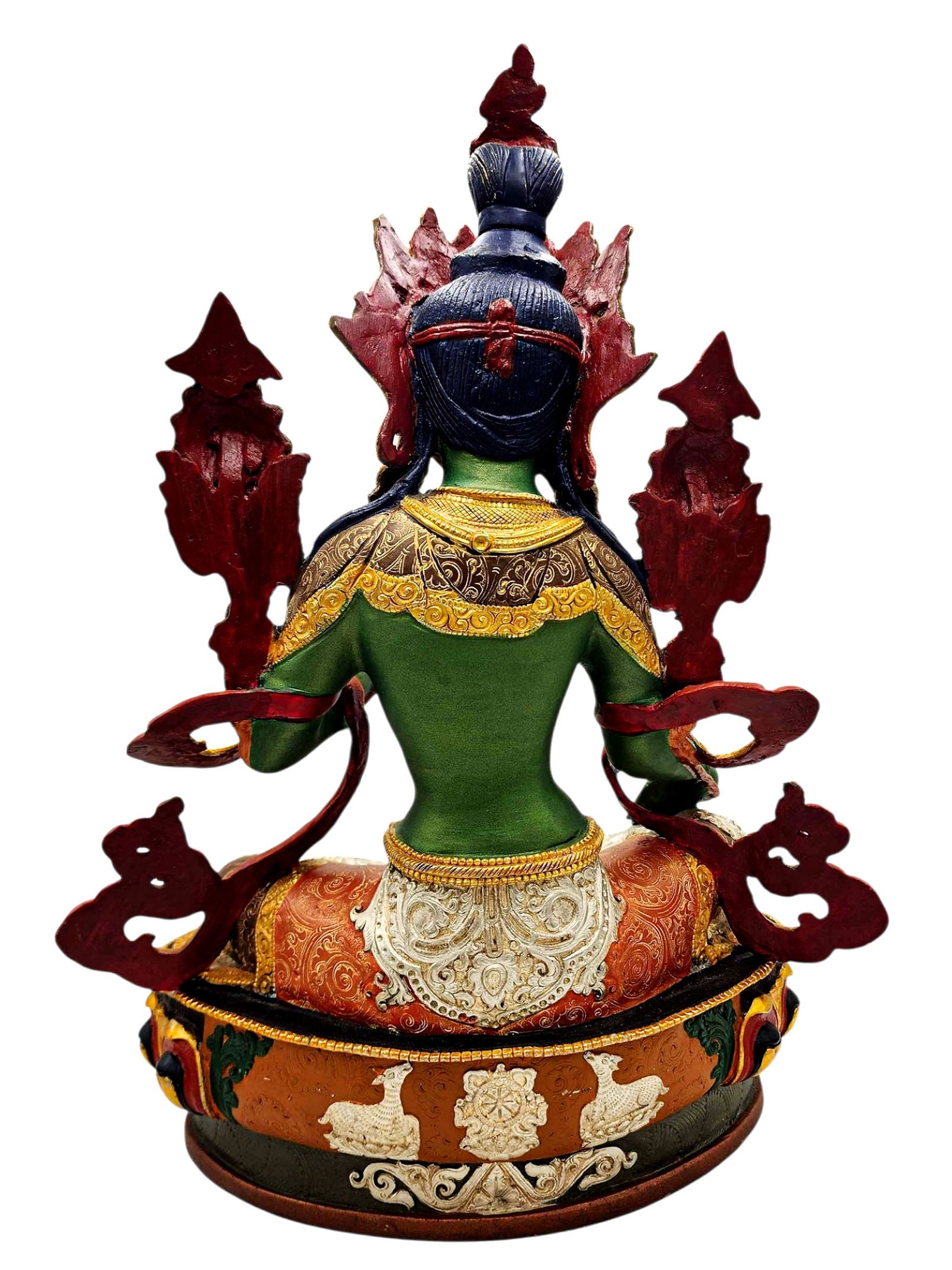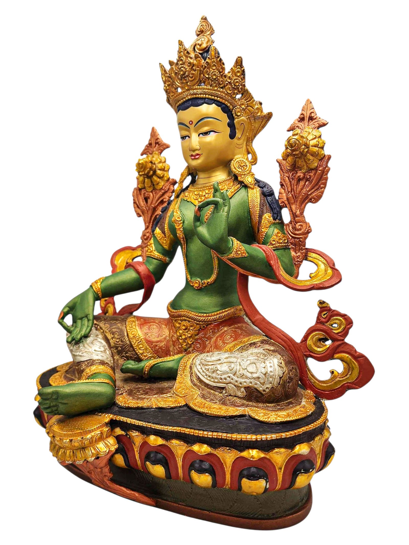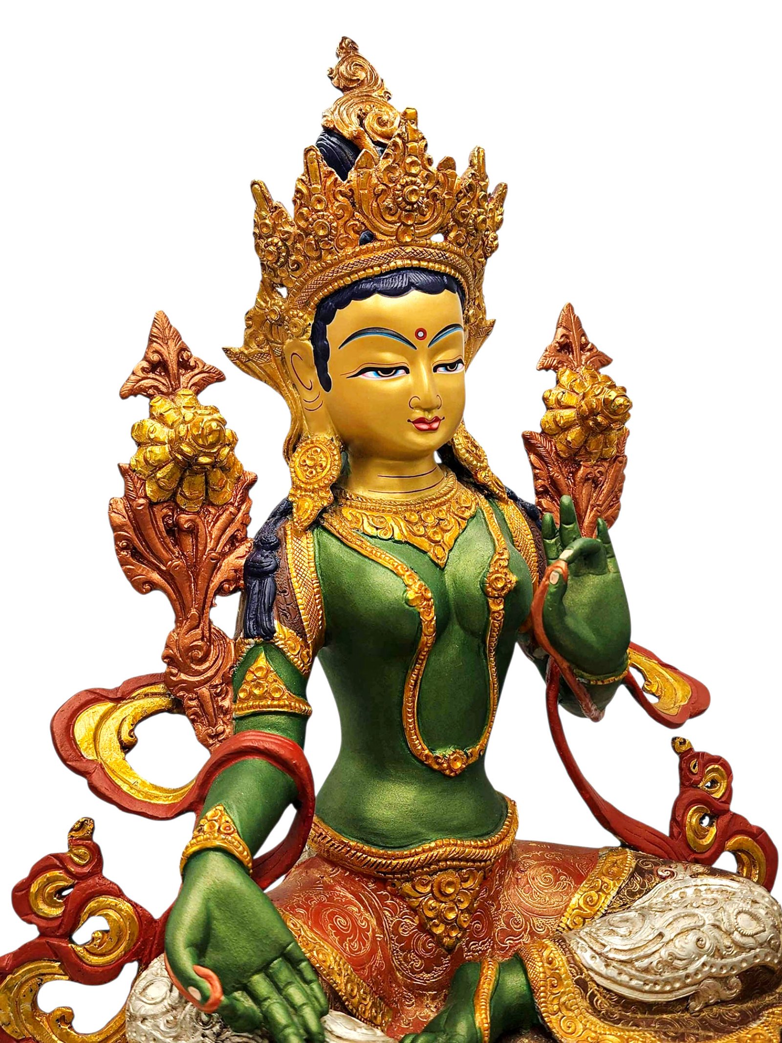 Green Tara, Buddhist Handmade Statue, Thangka Color Finishing, Face Painted , Goddess of Compassion, Protection, and Swift Action
