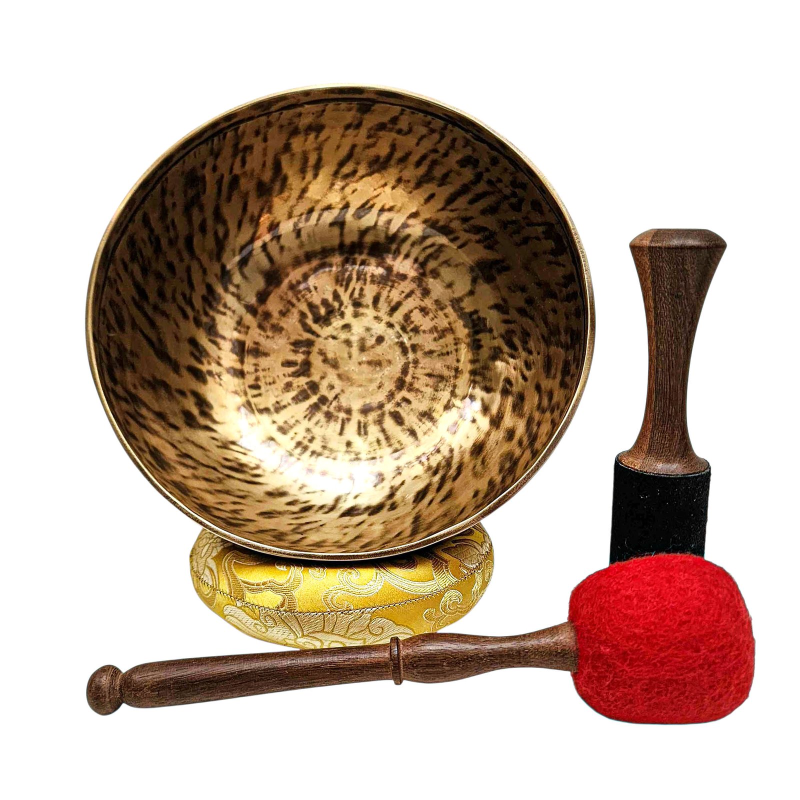 The Jambati Singing Bowl you are purchasing includes a cushion, a wooden playing mallet, and a felt-hitting mallet for playing the bowl. If you require additional accessories, you can browse the options above and purchase them separately. Should you have any further questions or need assistance, please don't hesitate to let us know. Read More