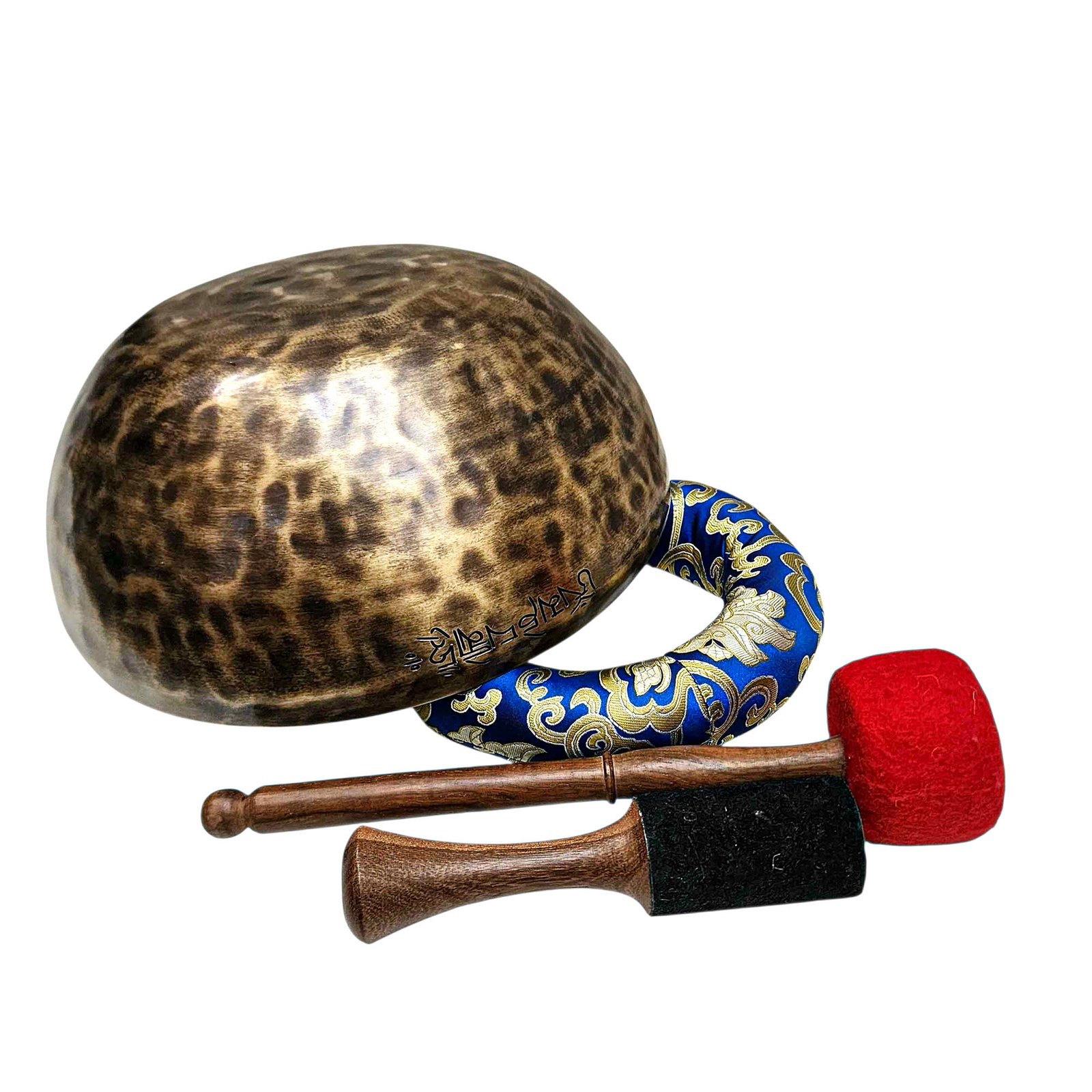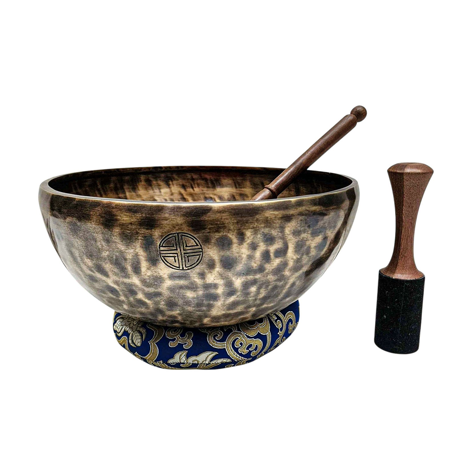 Full Moon Bowl, Moon Carved, Buddhist Hand Beaten Singing Bowl, Antique Finishing, Select Accessories |