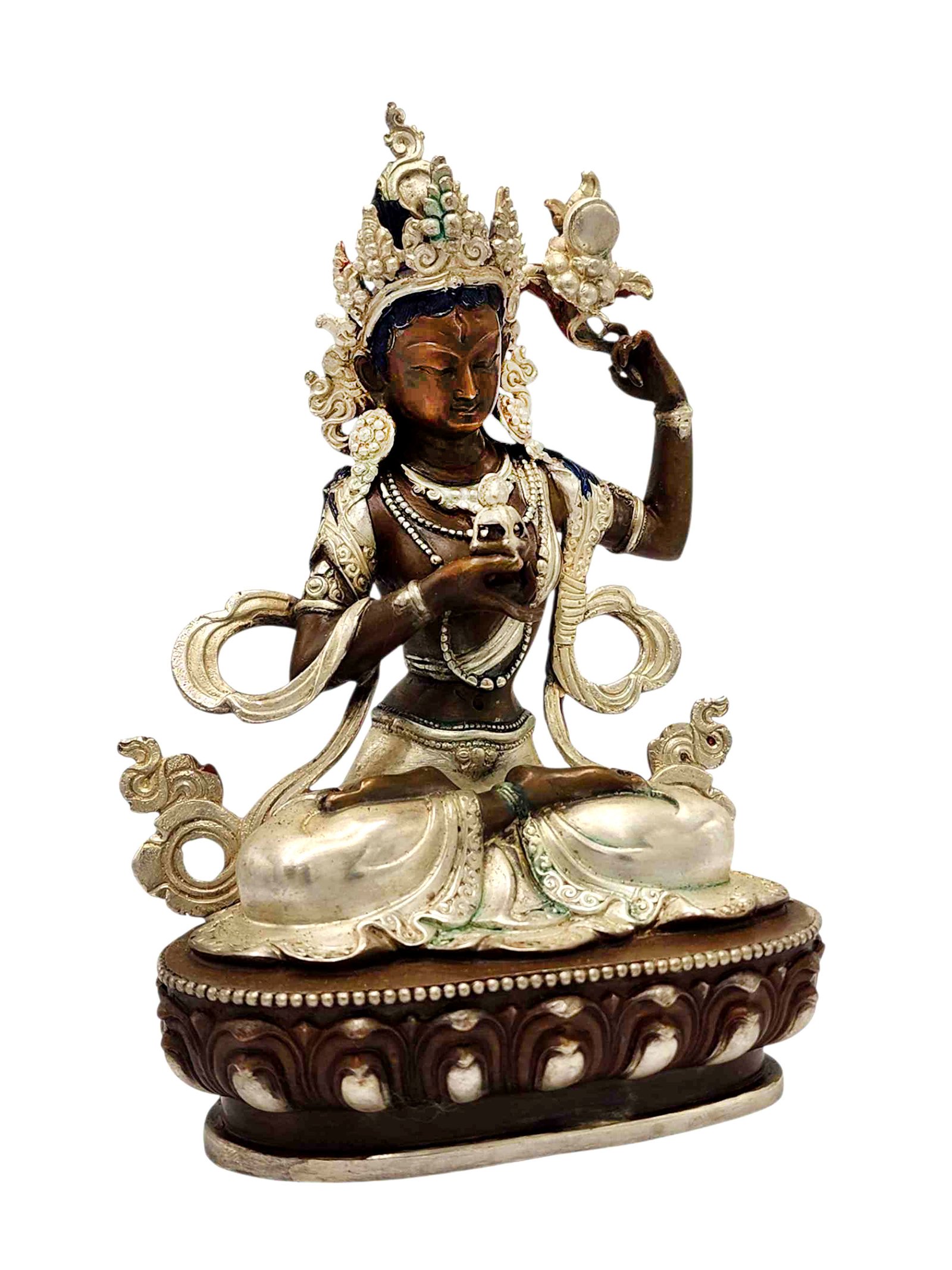 Jhyama, Buddhist Miniature Statue, Silver and Chocolate Oxidized |
