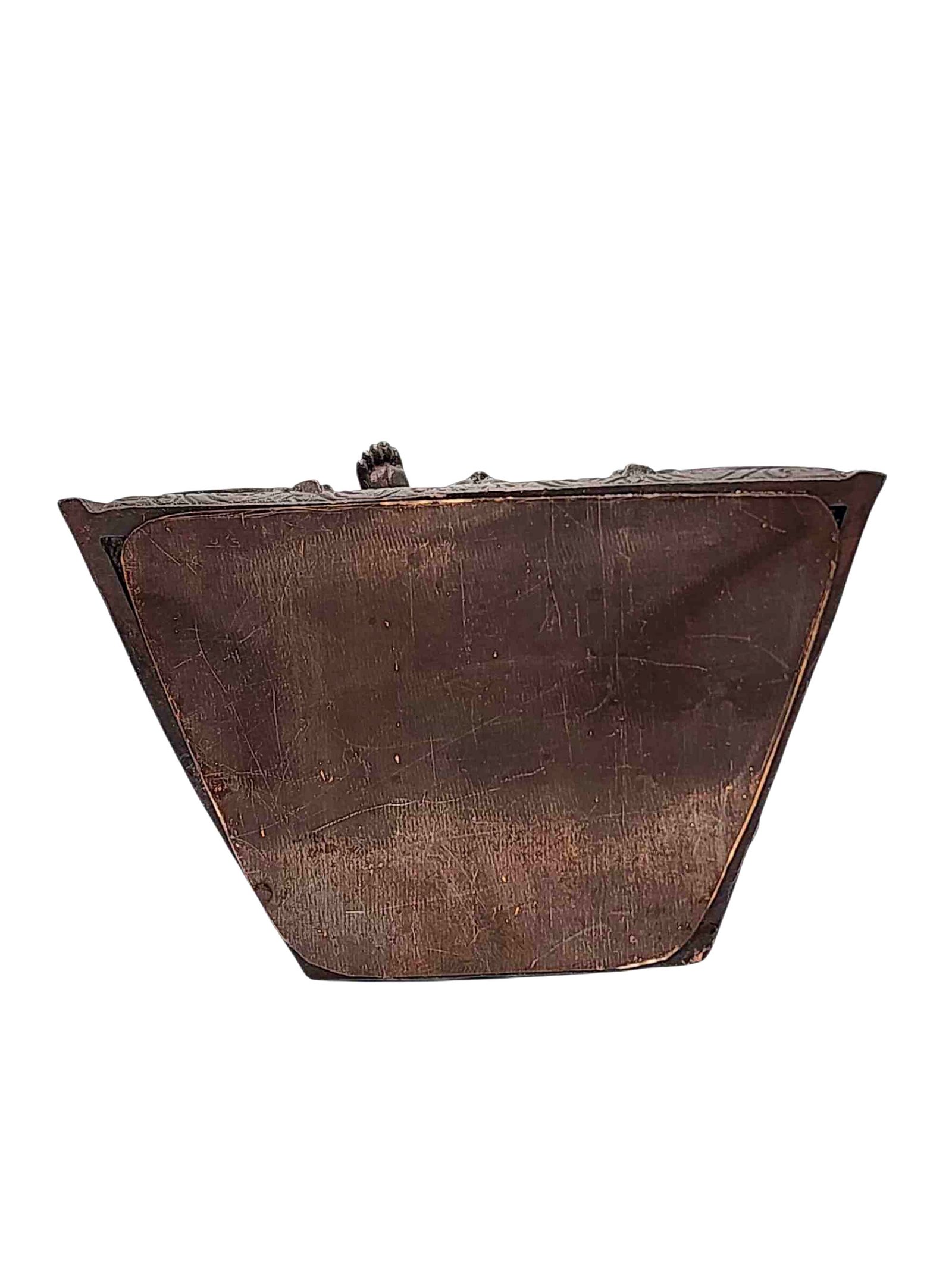 This Milarepa has been meticulously treated with a chocolate color antique patina. The intention behind this patina is to replicate the appearance of a copper statue that has gracefully aged over a century. Unlike a simple coat of paint, this patina is not applied superficially and is designed to endure. It undergoes an artificial oxidation process that adds depth and character, while also serving as a protective layer against natural oxidation.