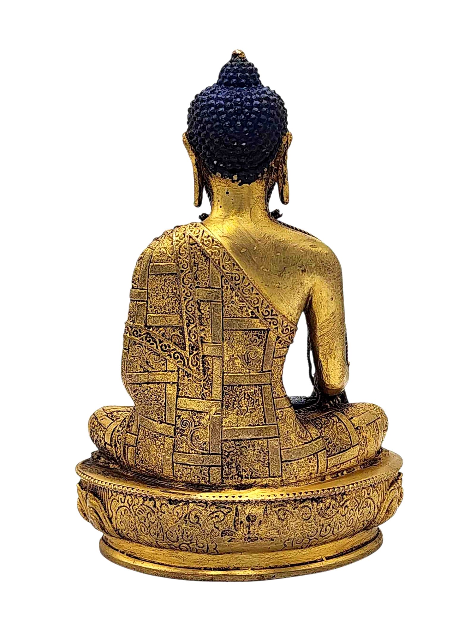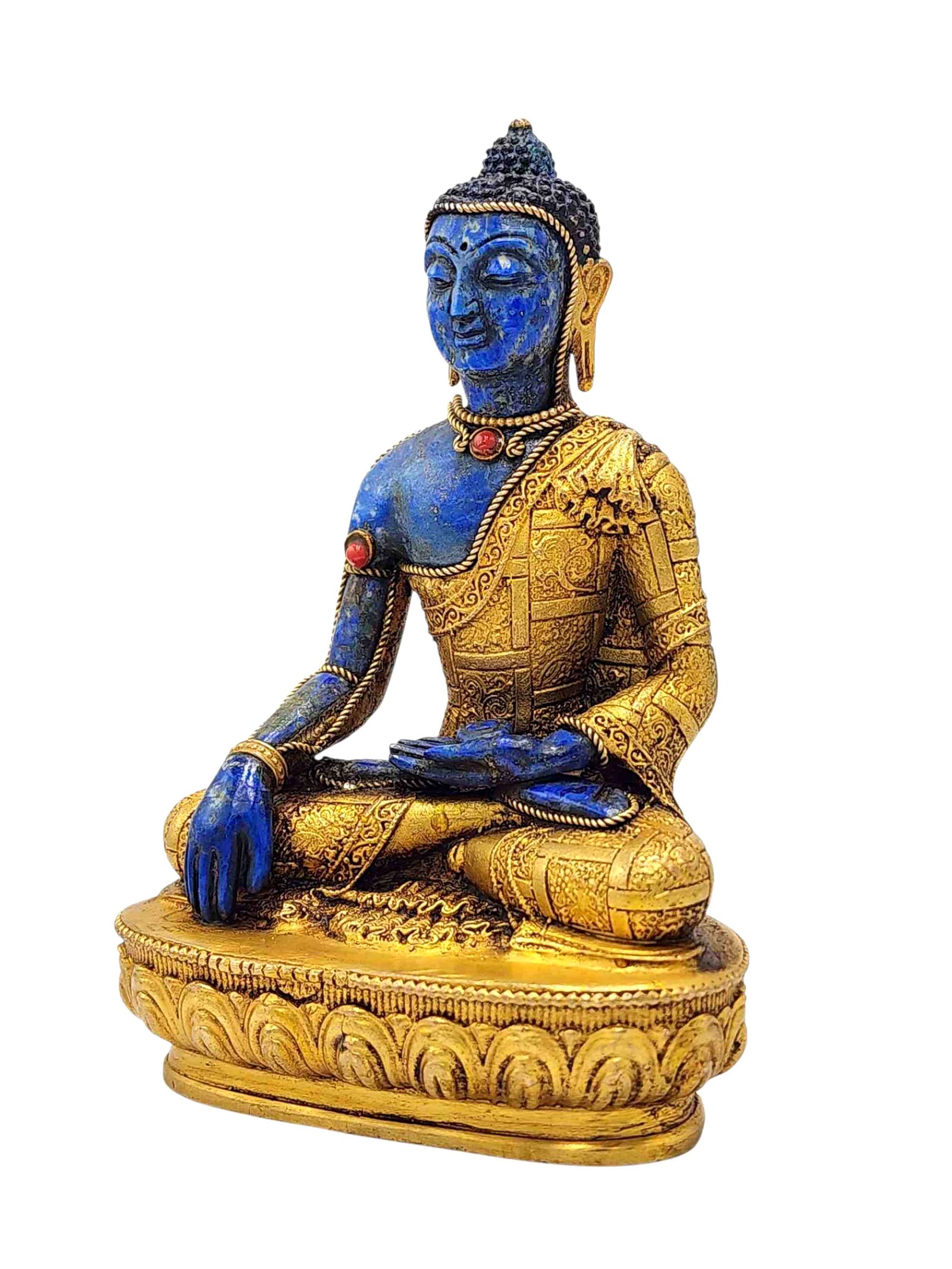 Shakyamuni Buddha, Buddhist Miniature Statue, Lapis, Full Gold Plated, Stone Setting , The Enlightened One and Teacher of Humanity