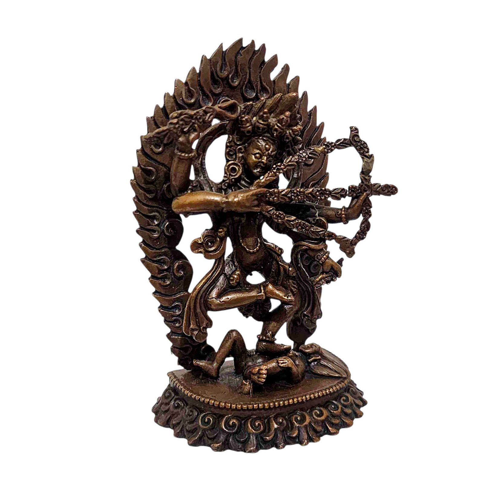 By imitating the natural aging process, the chocolate color antique patina lends an air of authenticity and vintage charm to the Kurukulla. This carefully crafted finish ensures that the patina remains intact for an extended period, offering longevity and resistance to wear. The result is a unique piece that captures the essence of a time-worn copper statue, evoking a sense of history and artistic heritage.