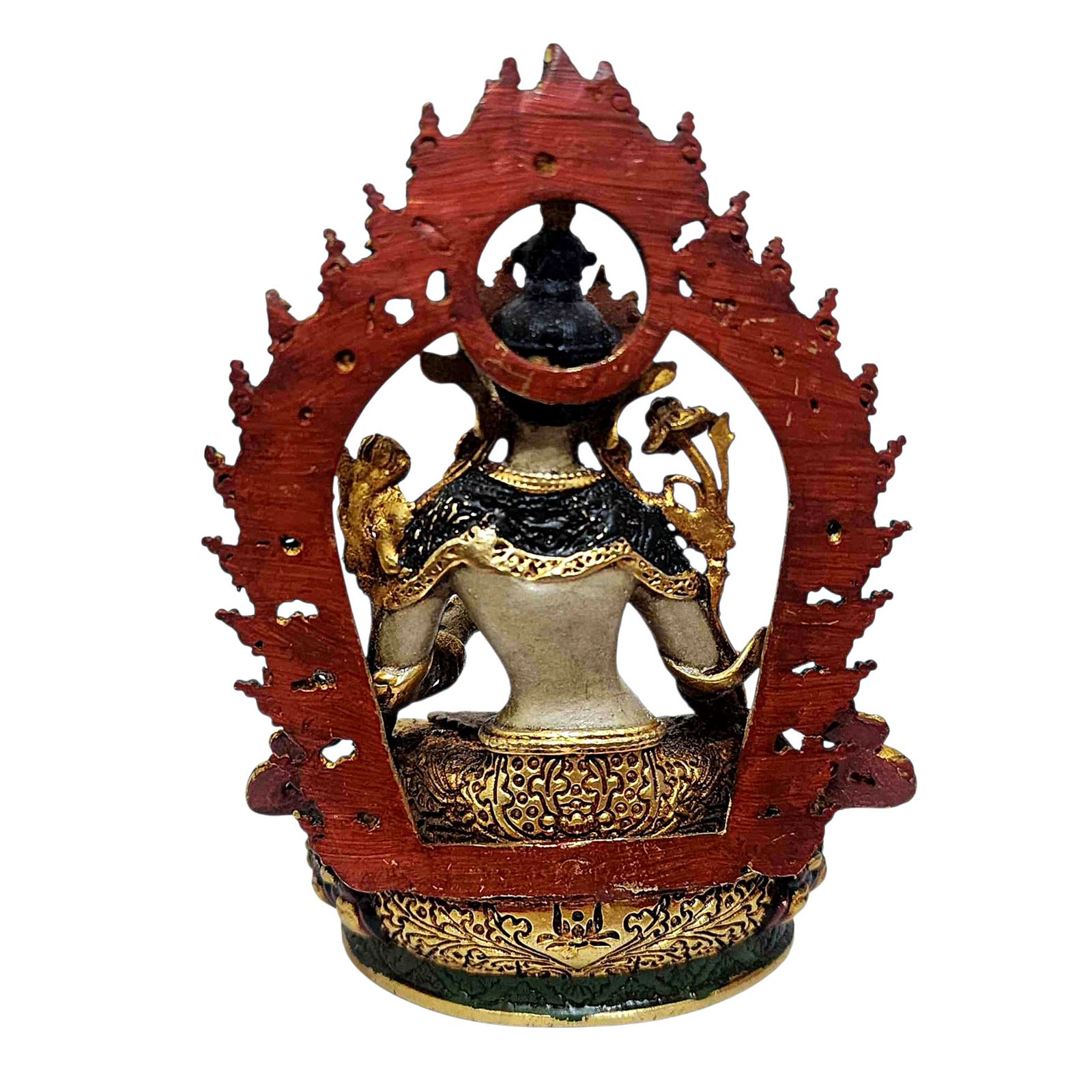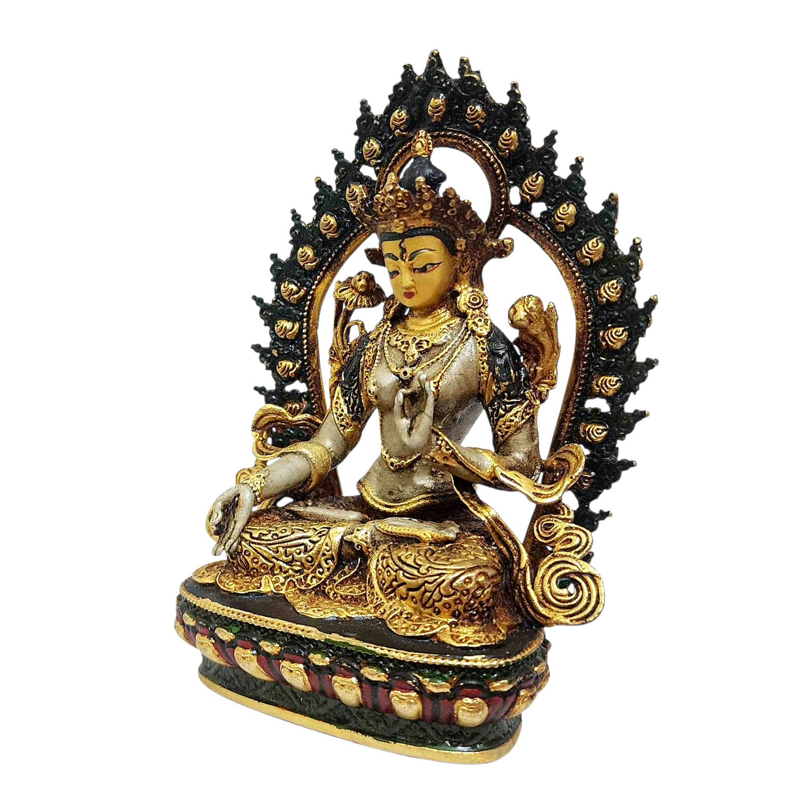 White Tara, Buddhist Miniature Statue, Thangka Color Finishing, Face Painted , Goddess of longevity, healing, and serene compassion