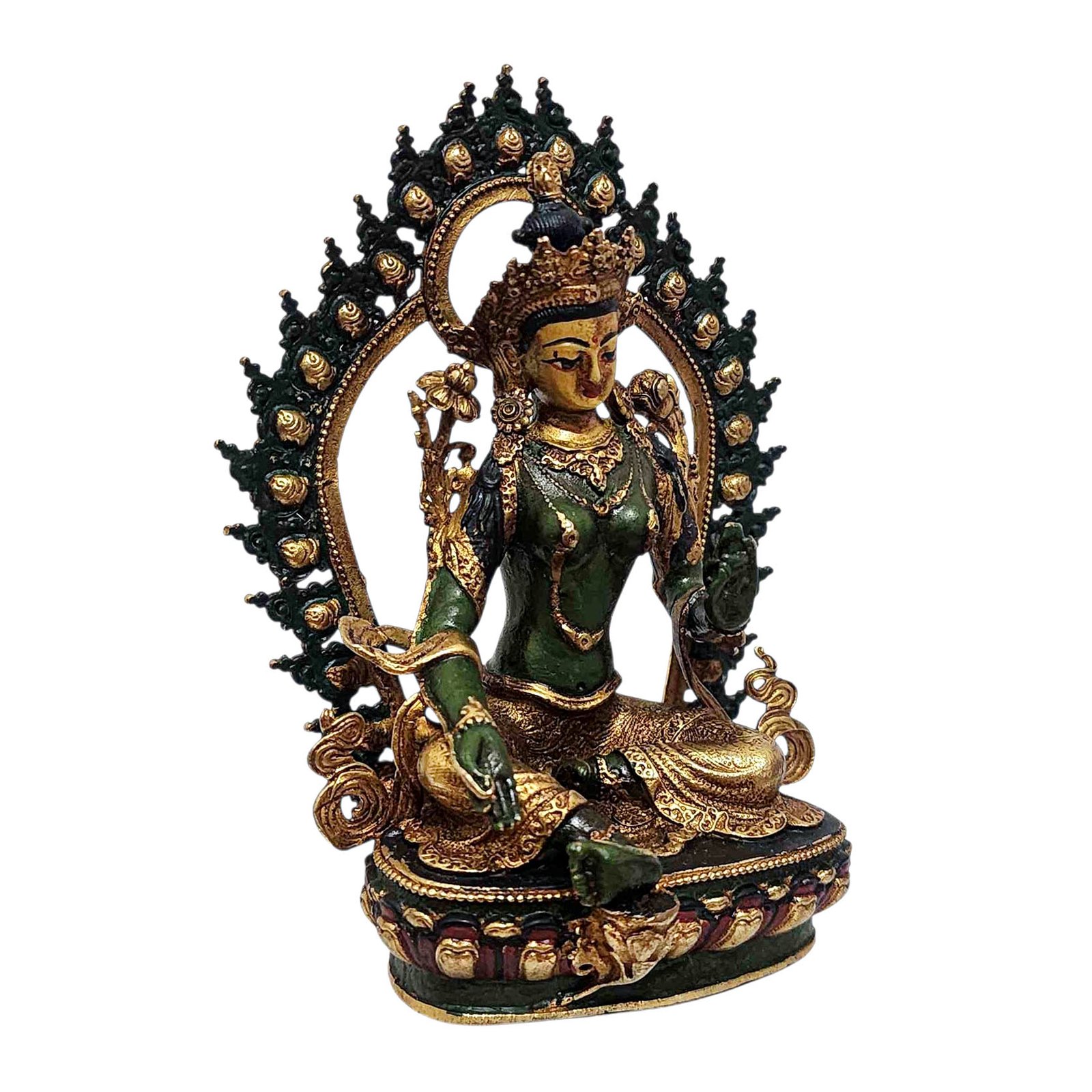Green Tara, Buddhist Miniature Statue, Thangka Color Finishing, Face Painted , Goddess of Compassion, Protection, and Swift Action