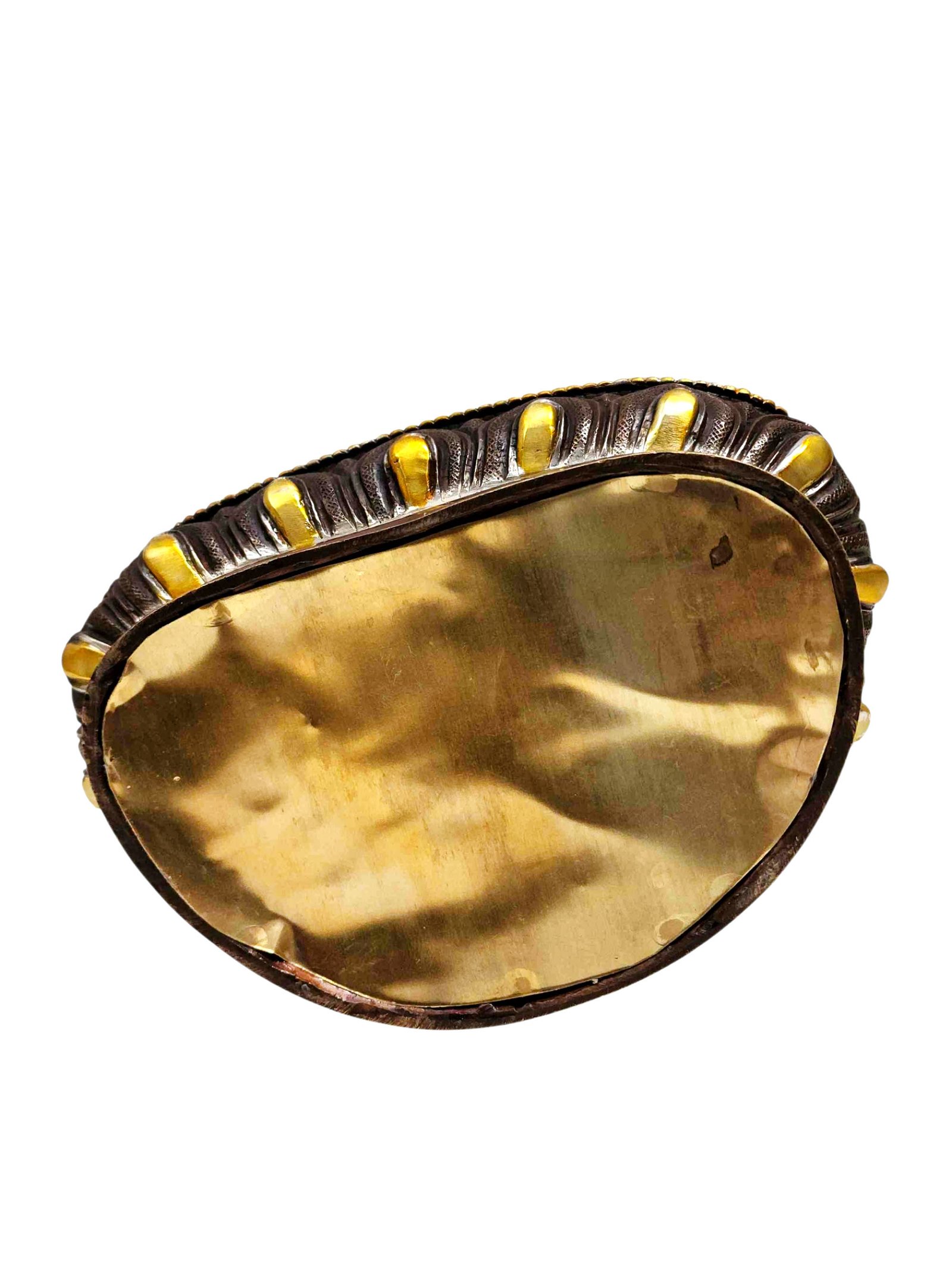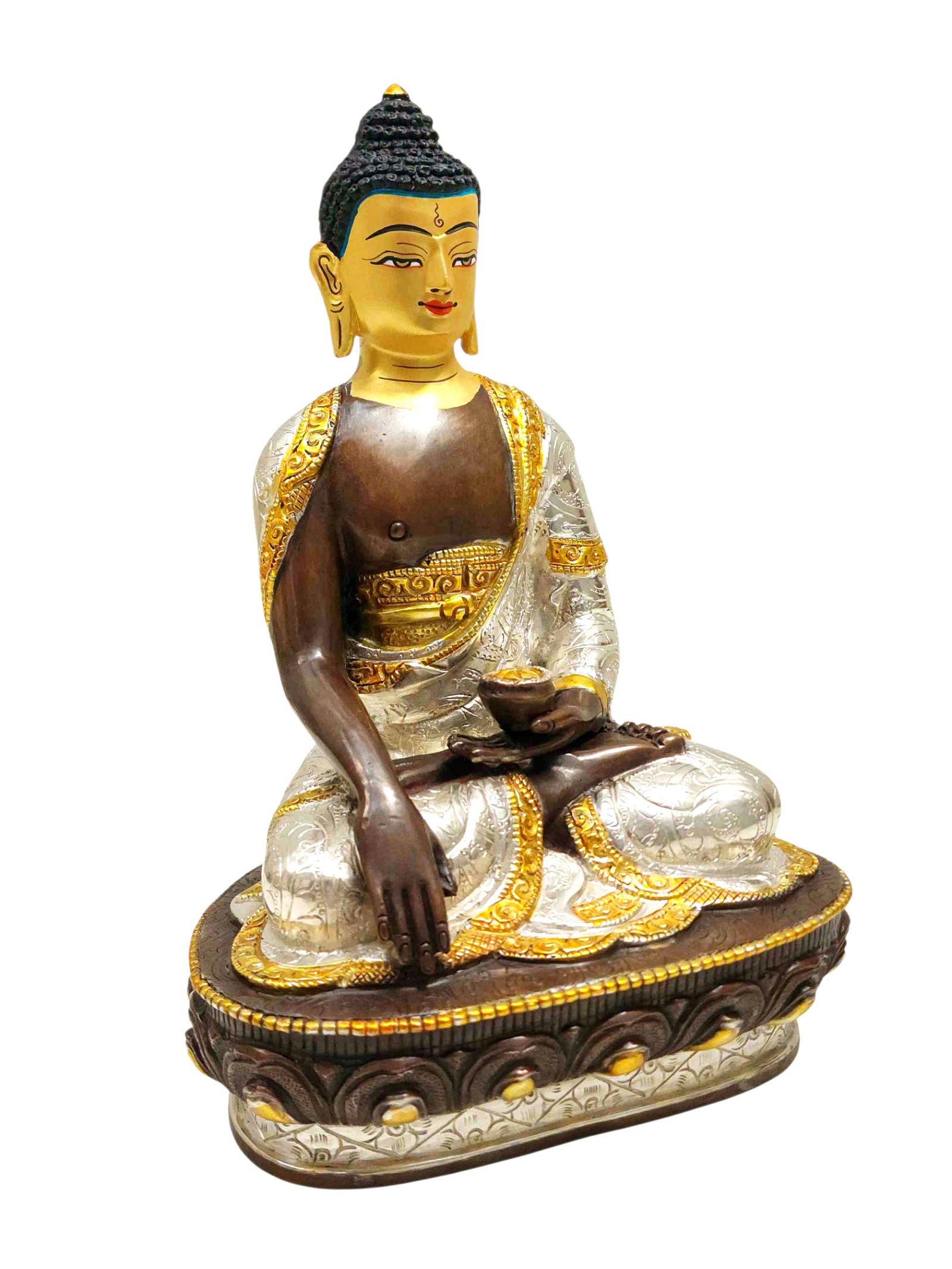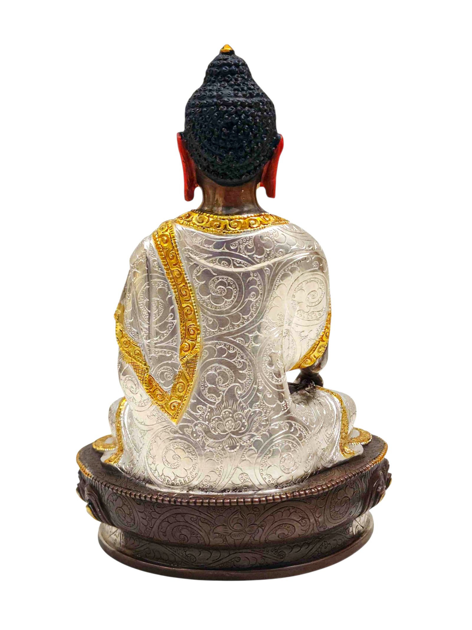 Shakyamuni Buddha, Buddhist Handmade Statue, Chocolate and Silver Oxidized with Extra Gold Plated, Face Painted , The Enlightened One and Teacher of Humanity
