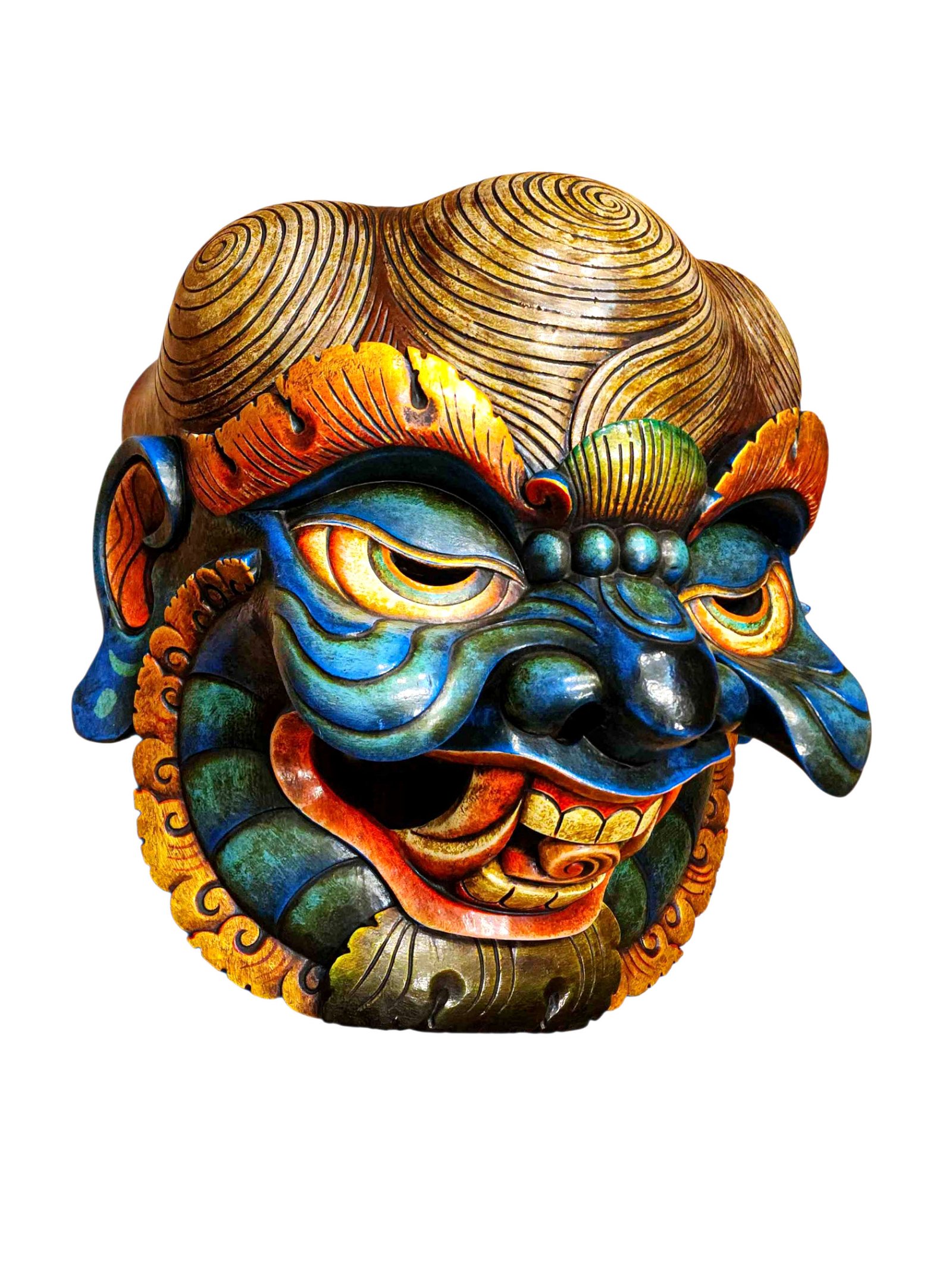 this Wooden Mask mask is Nepali handmade mask and we are Introducing our exquisite collection of Nepali handmade hand-carved wooden Buddhist masks and wall hangings, meticulously crafted by skilled artisans. Each piece in this collection reflects the rich cultural heritage and spiritual significance of Nepal. These masks and wall hangings are not just decorative pieces but hold deep symbolic meaning, making them perfect for adding an authentic touch to your living spaces or meditation rooms. Read More