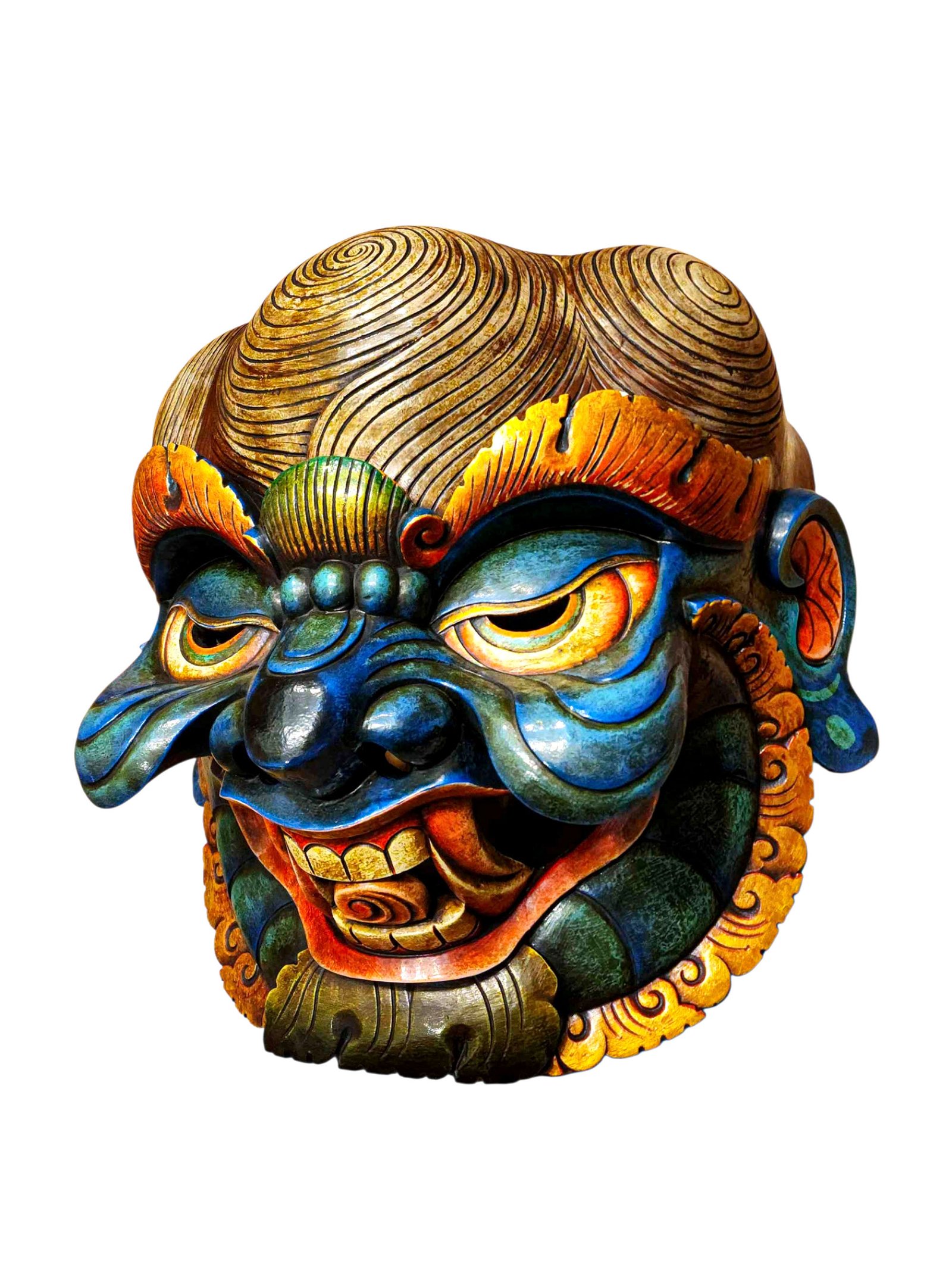 Buddhist Wooden Mask of Tribal Mask, Tibetan Style Wtih Traditional Colors, Poplar Wood |