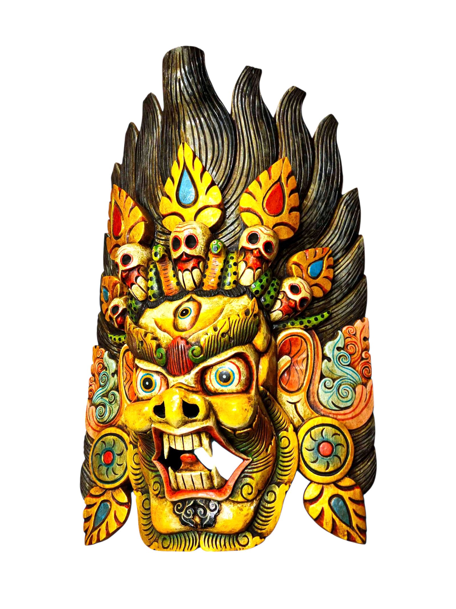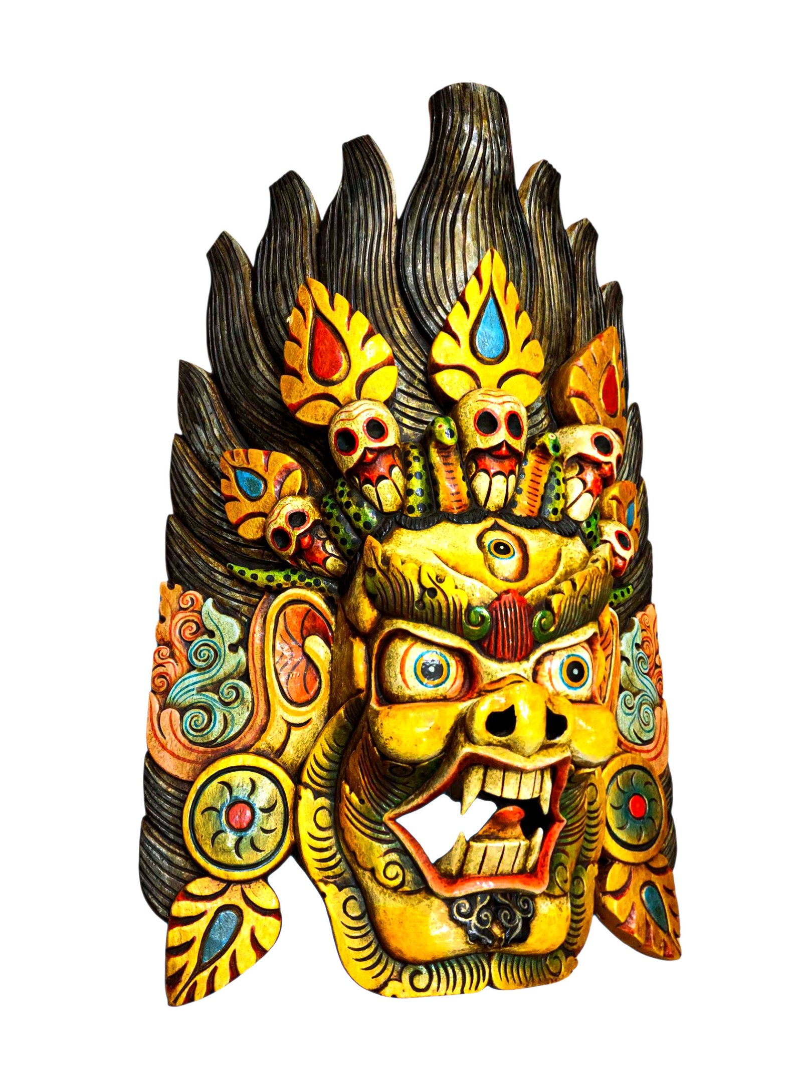 Buddhist Wooden Mask of Bhairav, Tibetan Style Wtih Traditional Colors, Poplar Wood |