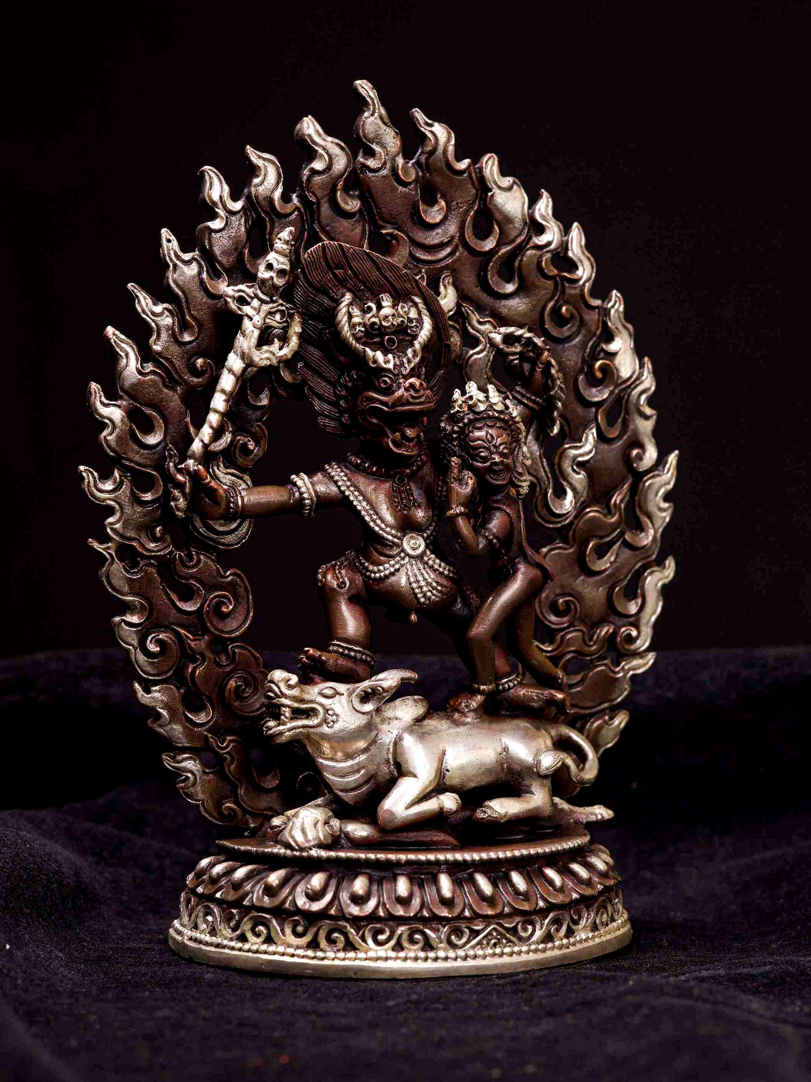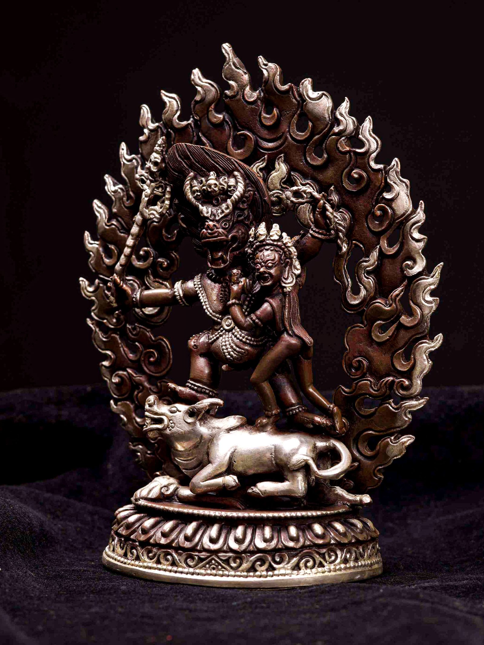 Yamantaka Shakti, HQ, Buddhist Miniature Statue, Silver and Chocolate Oxidized , wrathful destroyer of ignorance