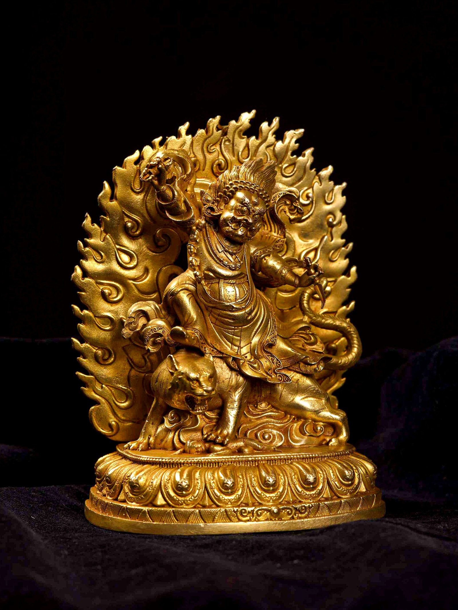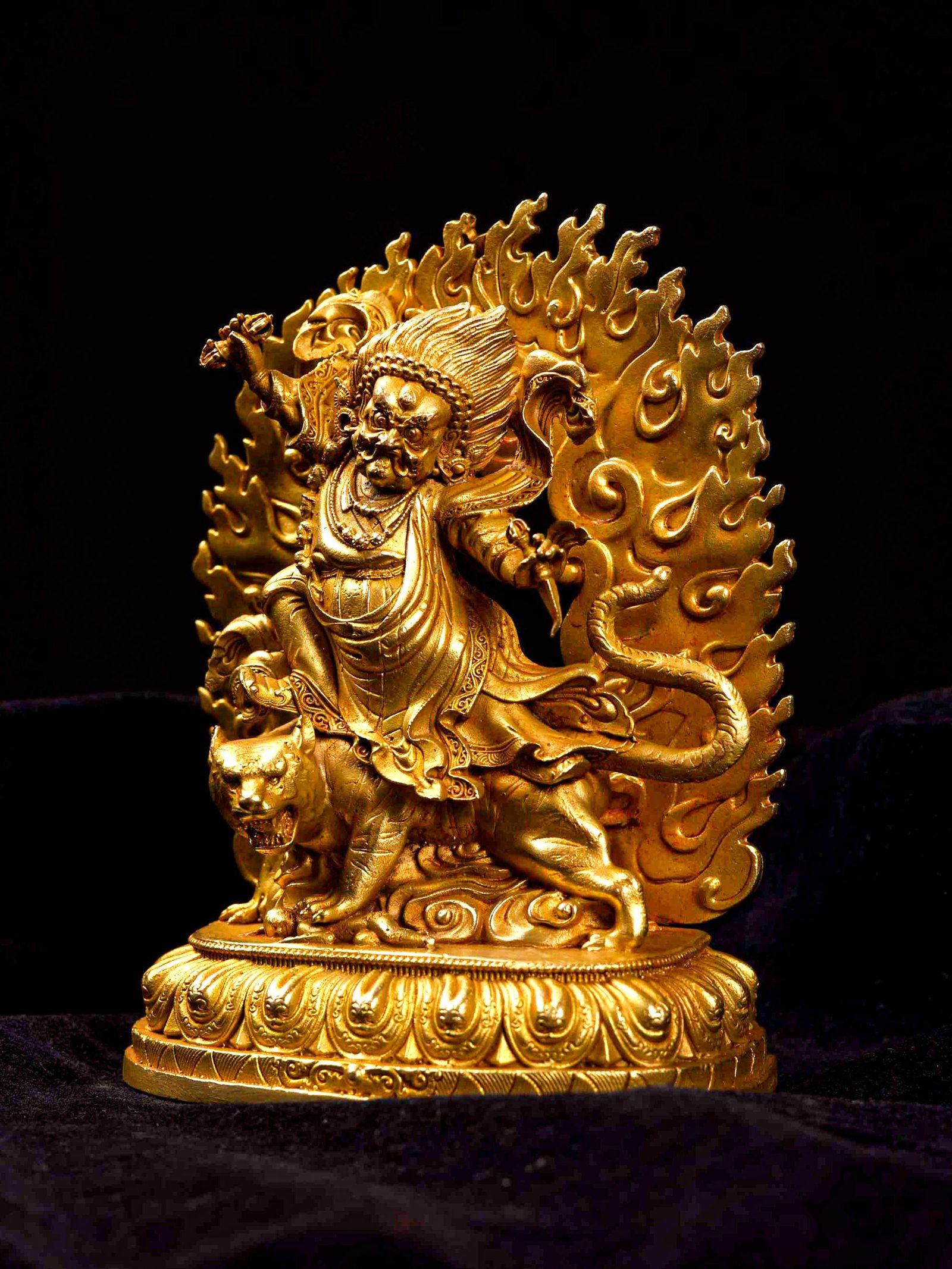 Guru Dorje Drolo is one of the Eight Manifestations of Guru Rinpoche, Guru Rinpoche in wrathful form riding upon a pregnant tigress. He assumed this manifestation in Paro Taktsang in Bhutan in order to bring the local deities and guardians under his control. Read More